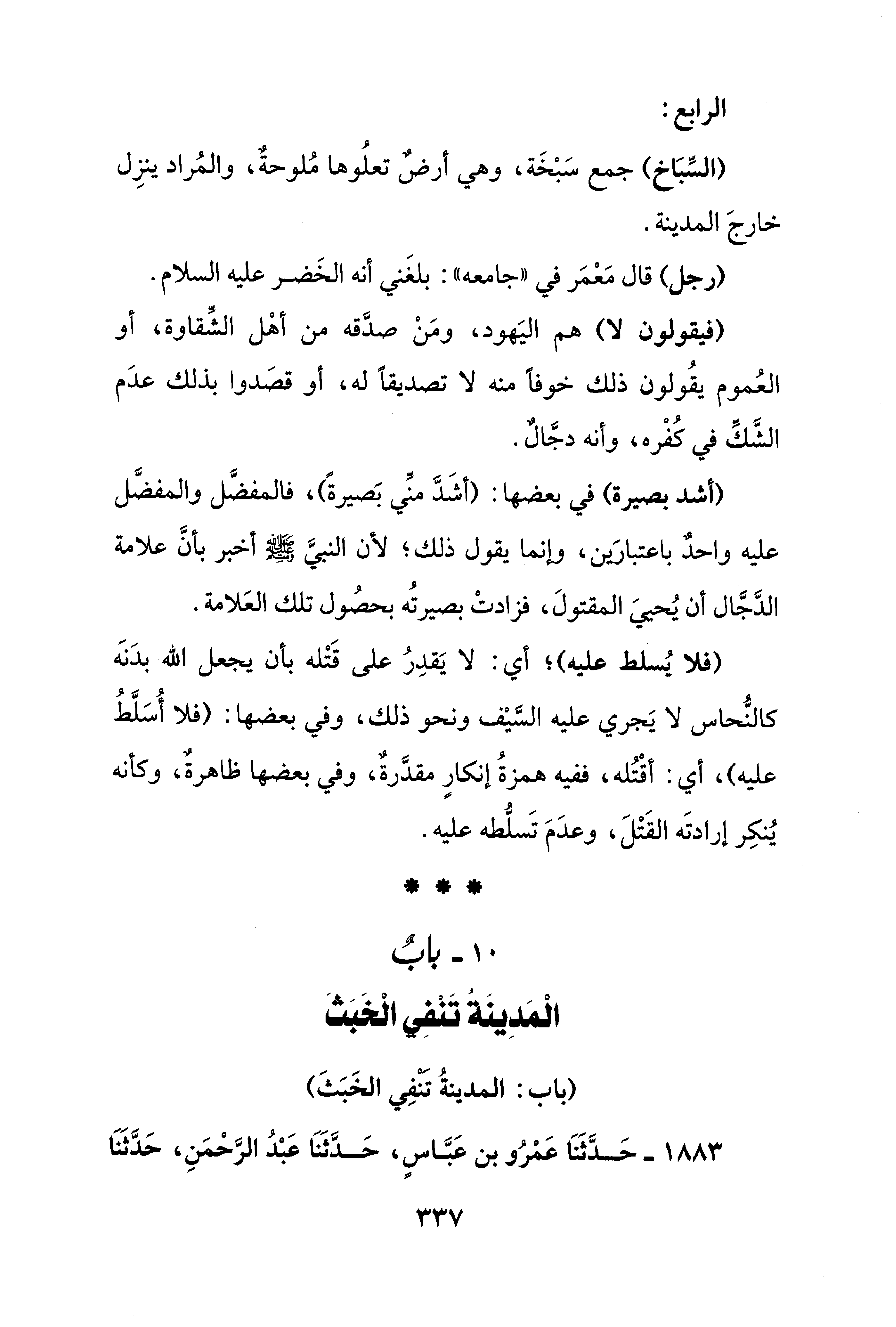 (السِّبَاخ) جمع سَبْخَة، وهي أرضٌ تعلُوها مُلوحةٌ، والمُراد ينزِل خارجَ المدينة.