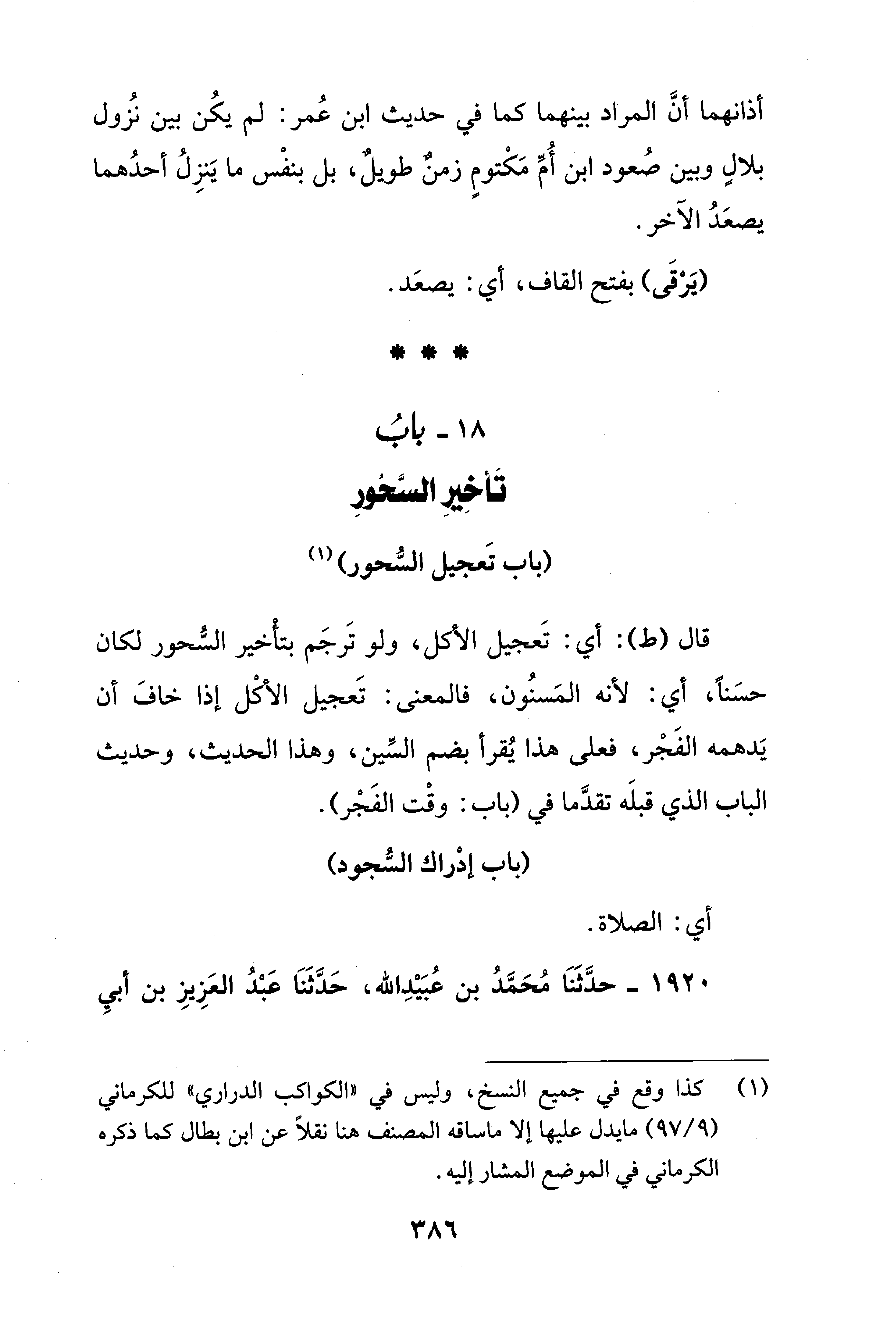 18 - بابُ تَأخِيرِ السَّحُورِ