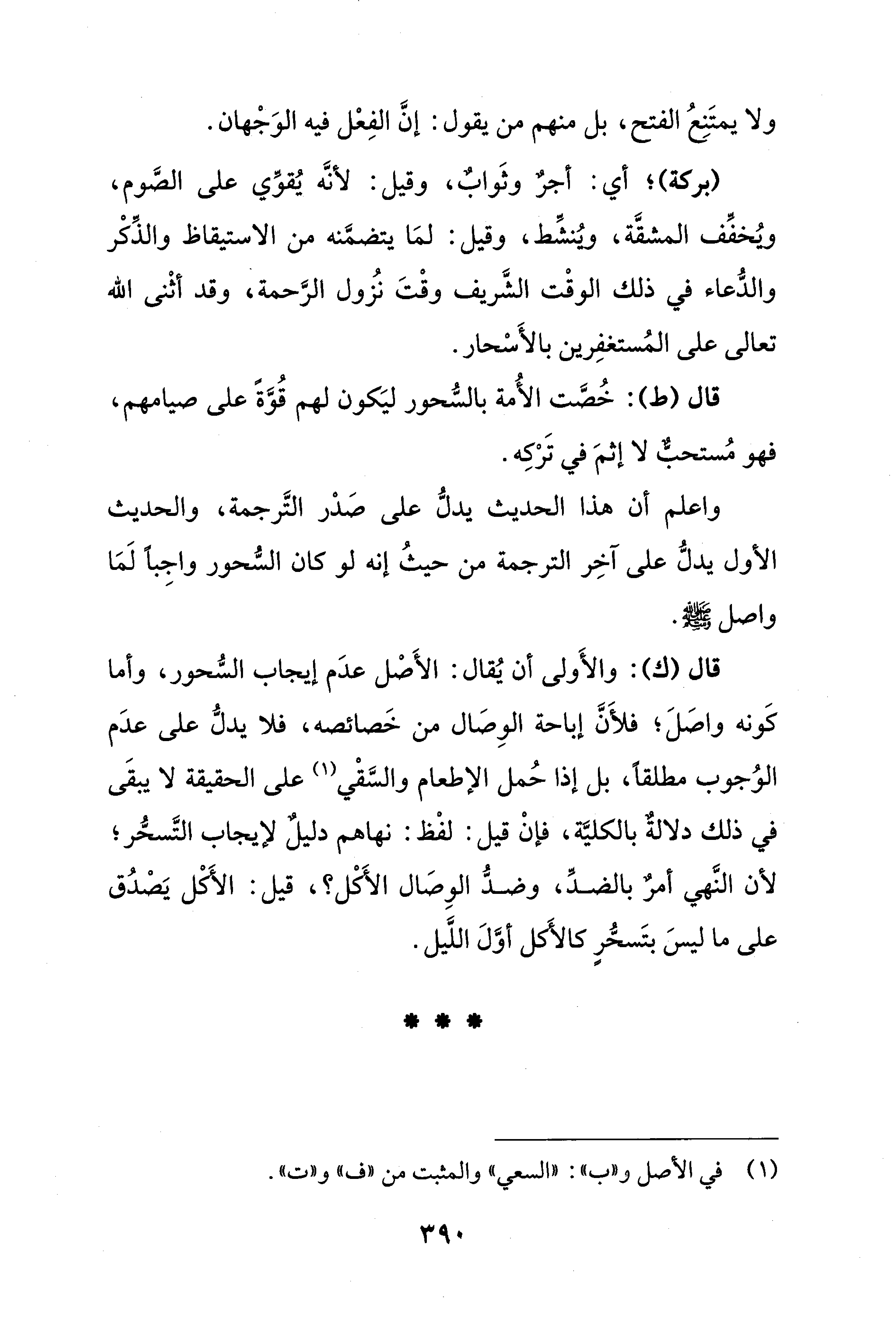 قال (ط): خُصَّت الأُمة بالسُّحور ليَكون لهم قُوَّةً على صيامهم، فهو مُستحبٌّ لا إثمَ في تَرْكِه.