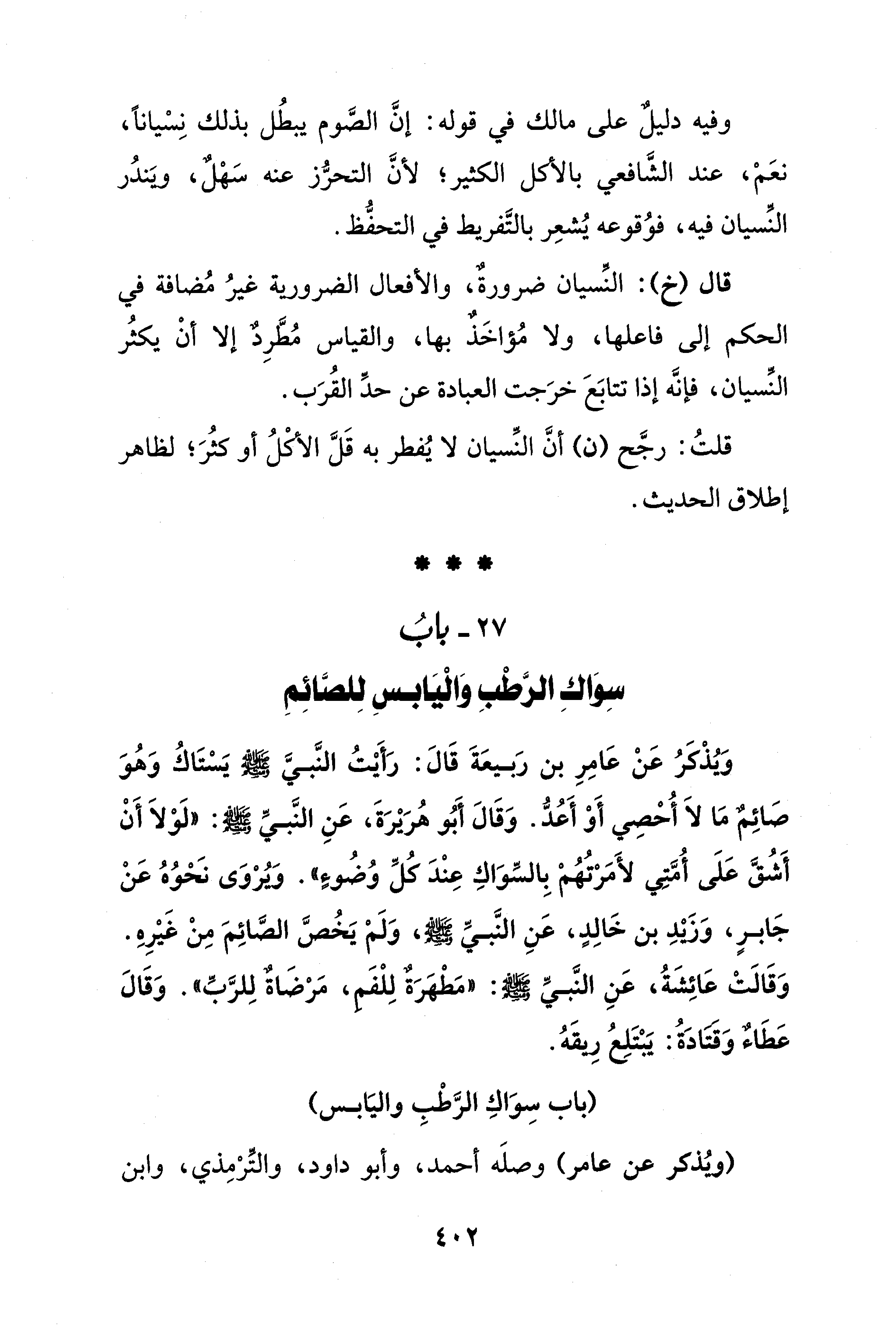 27 - بابُ سِوَاكِ الرَّطْبِ وَالْيَابسِ لِلصَّائِمِ