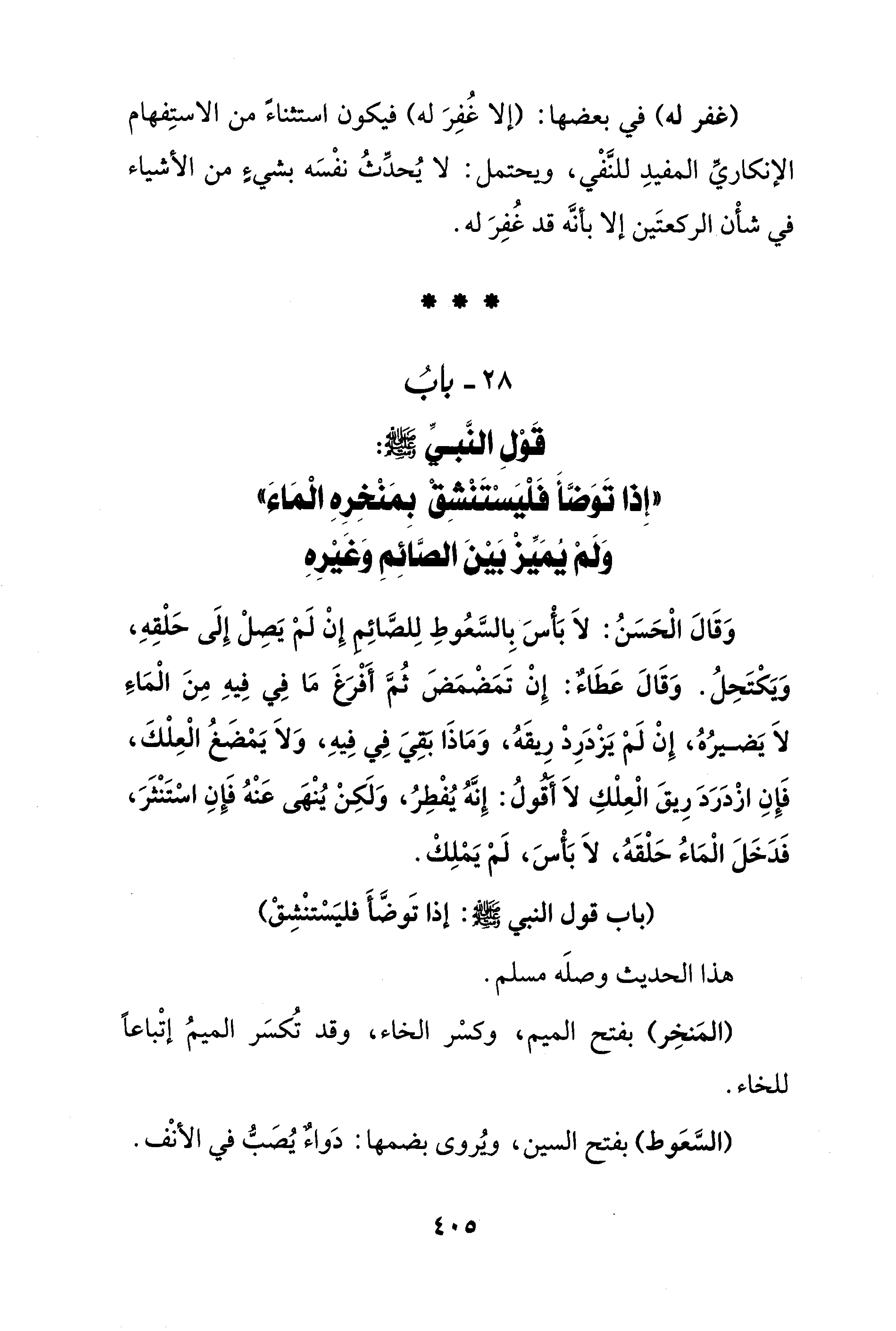 (باب قول النبي - صلى الله عليه وسلم -: إذا تَوضَّأ فليَسْتنْشِقْ)