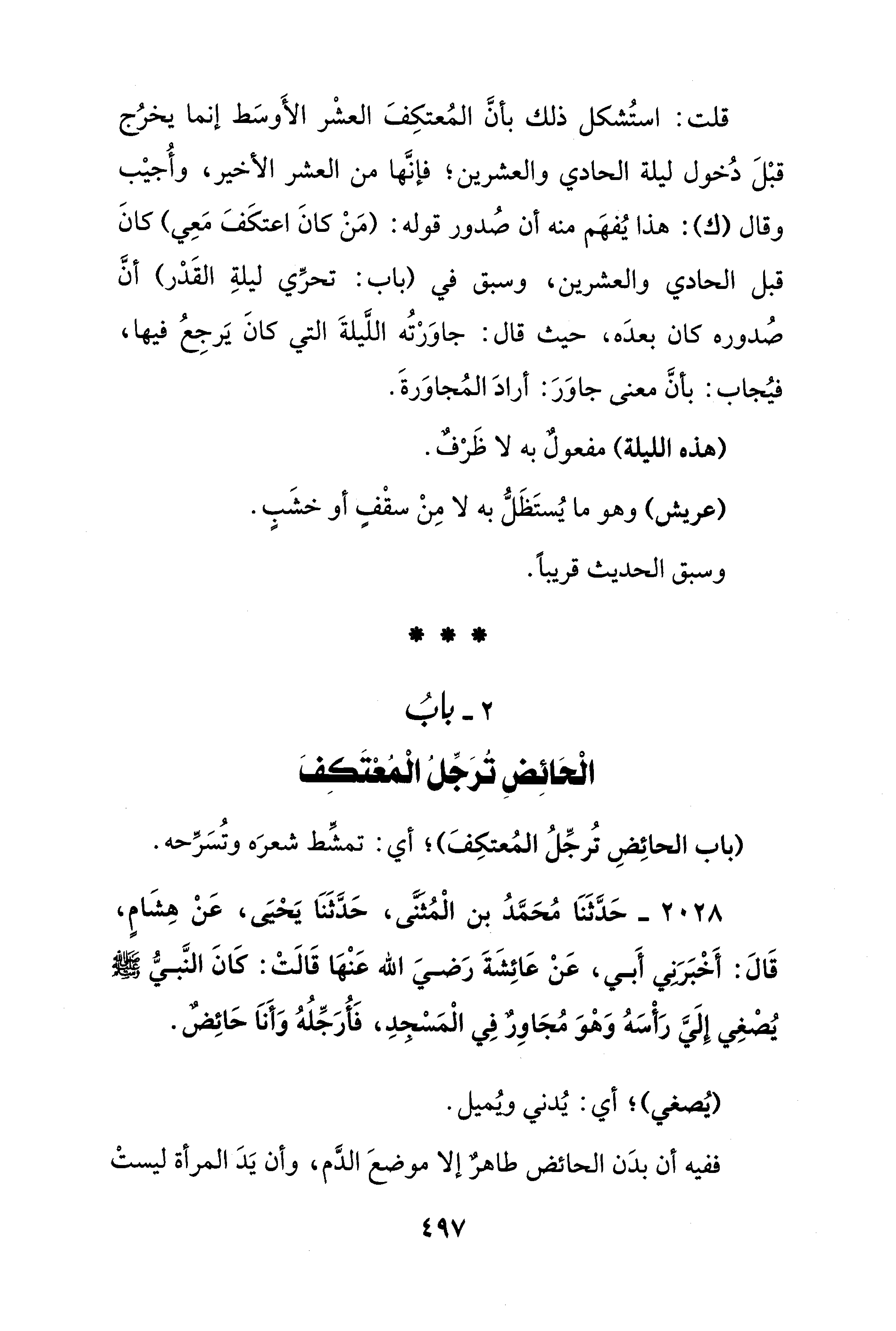 قلت: استُشكل ذلك بأنَّ المُعتكِفَ العشْر الأَوسَط إنما يخرُج قبْلَ دُخول ليلة الحادي والعشرين؛ فإنَّها من العشر الأخير، وأُجيْب وقال (ك): هذا يُفهم منه أن صُدور قوله: (مَنْ كانَ اعتكَفَ مَعِي) كانَ قبل الحادي والعشرين، وسبق في (باب: تحرِّي ليلةِ القَدْر) أنَّ صُدوره كان بعدَه، حيث قال: جاوَزتُه اللَّيلةَ التي كانَ يَرجِعُ فيها، فيُجاب: بأنَّ معنى جاوَرَ: أرادَ المُجاوَرةَ.