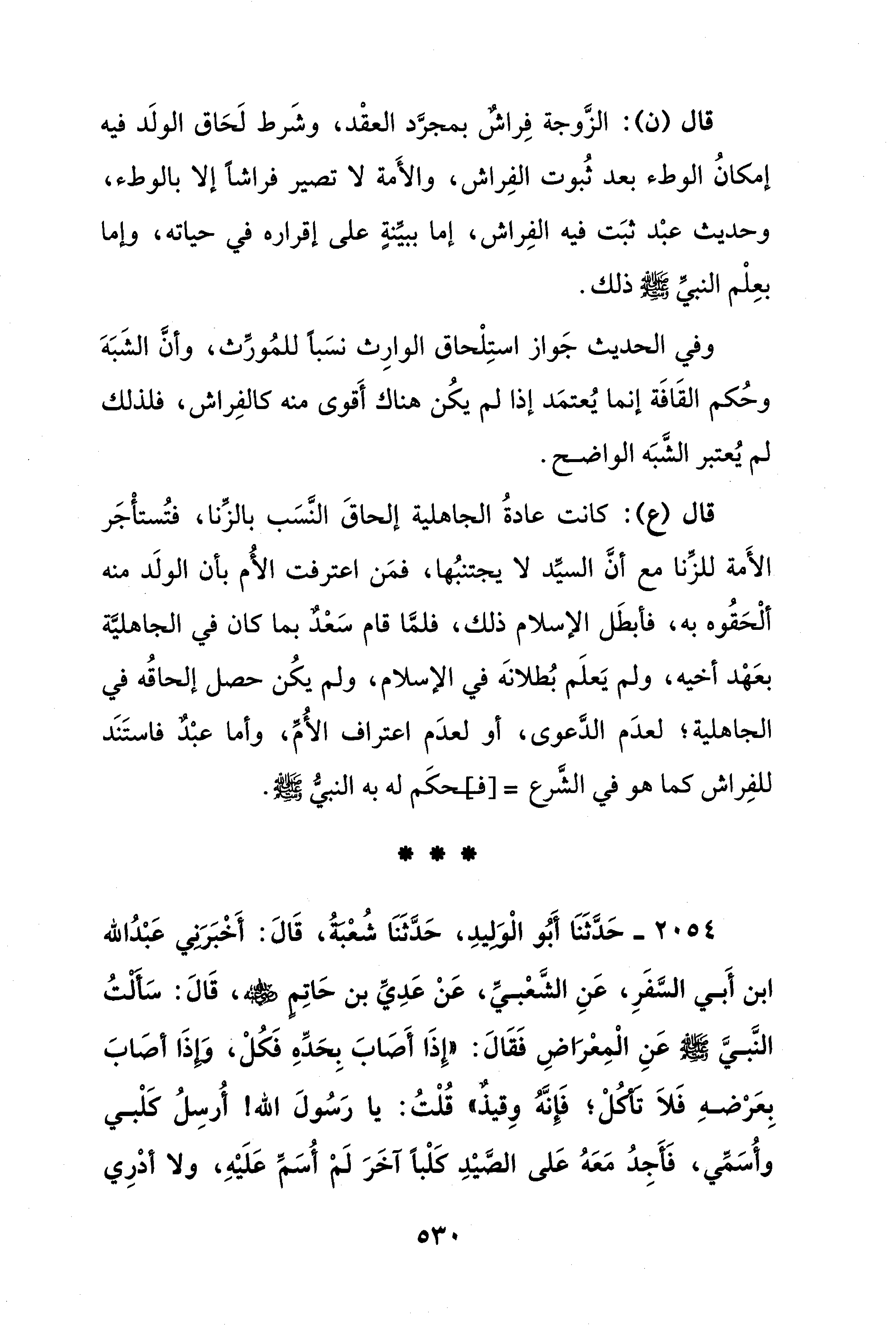 قال (ع): كانت عادةُ الجاهلية إلحاقَ النَّسَب بالزِّنا، فتُستأْجَر الأَمة للزِّنا مع أنَّ السيِّد لا يجتنبُها، فمَن اعترفت الأُم بأن الولَد منه ألْحَقُوه به، فأبطَل الإسلام ذلك، فلمَّا قام سَعْدٌ بما كان في الجاهليَّة بعَهْد أخيه، ولم يَعلَم بُطلانَه في الإسلام، ولم يكُن حصل إلحاقُه في الجاهلية؛ لعدَم الدَّعوى، أو لعدَم اعتراف الأُمِّ، وأما عبْدٌ فاستَنَد للفِراش كما هو في الشَّرع = [فـ]ـحكَم له به النبيُّ - صلى الله عليه وسلم -.