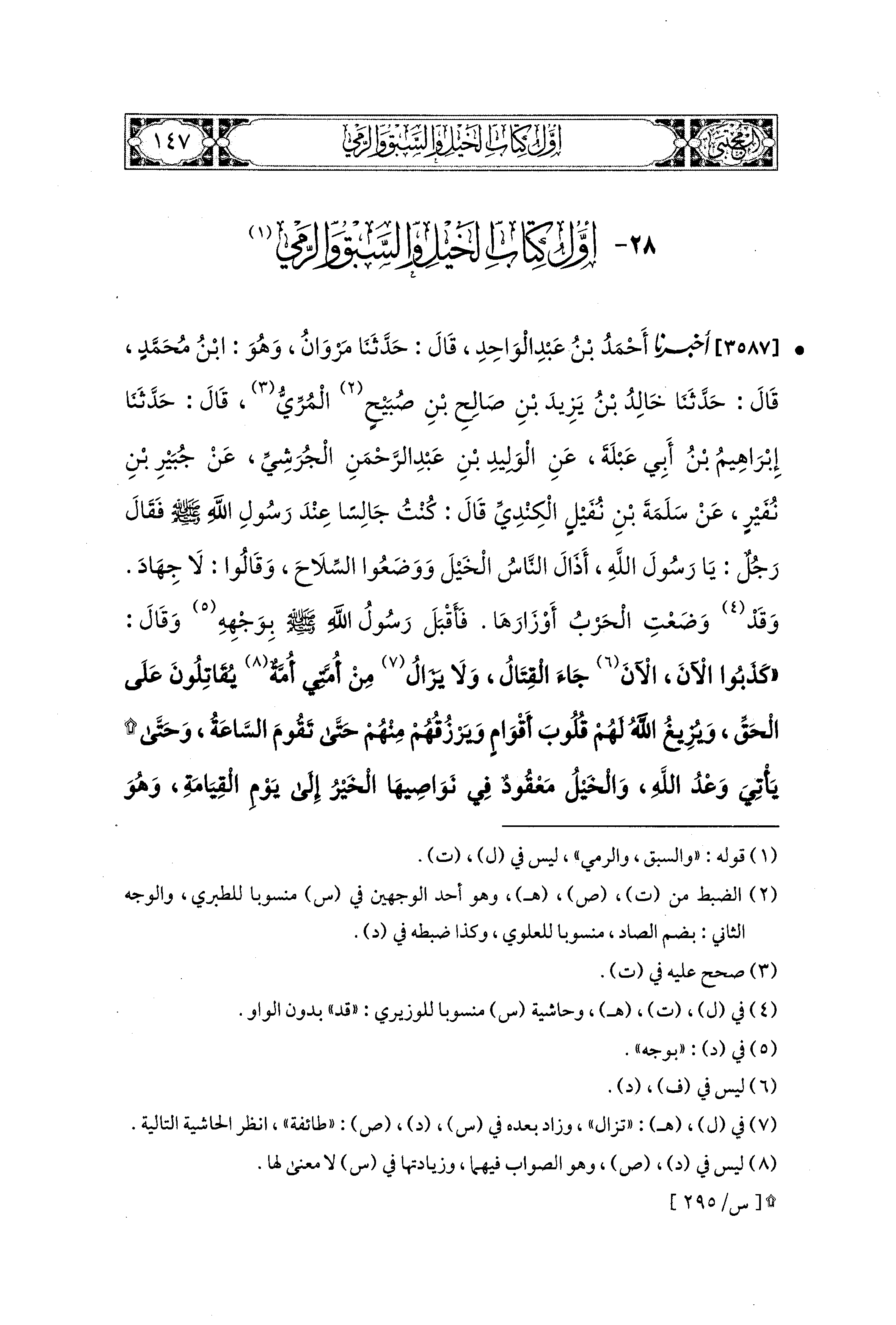 28 - أول كِتَابُ الخَيْلِ والسبق والرمي.