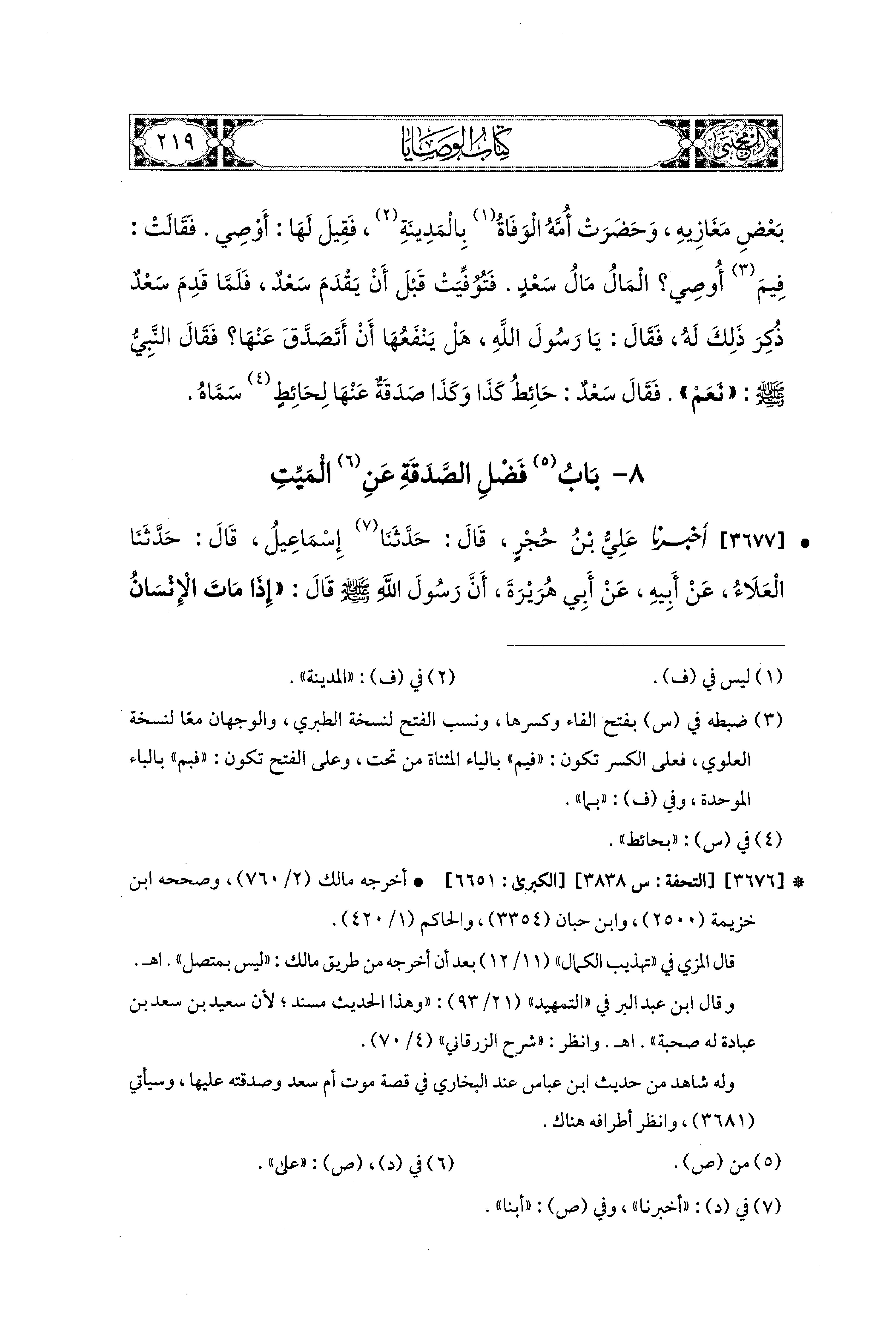 8- باب فَضْلُ الصَّدَقَةِ عَنِ المَيِّتِ.