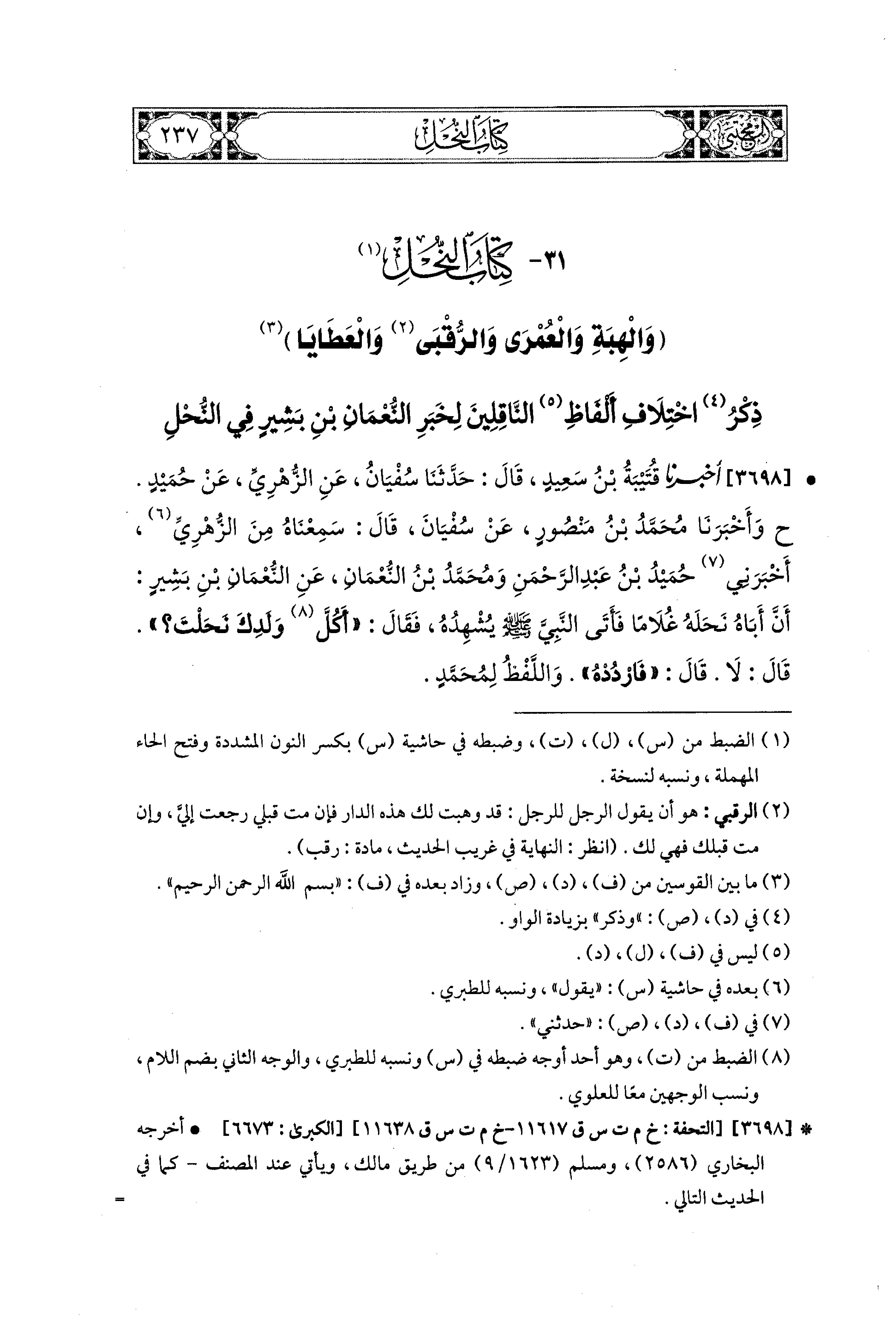 31 - كِتَابُ النُّحْلِ والهبة والعمرى والرقبى والعطايا.
