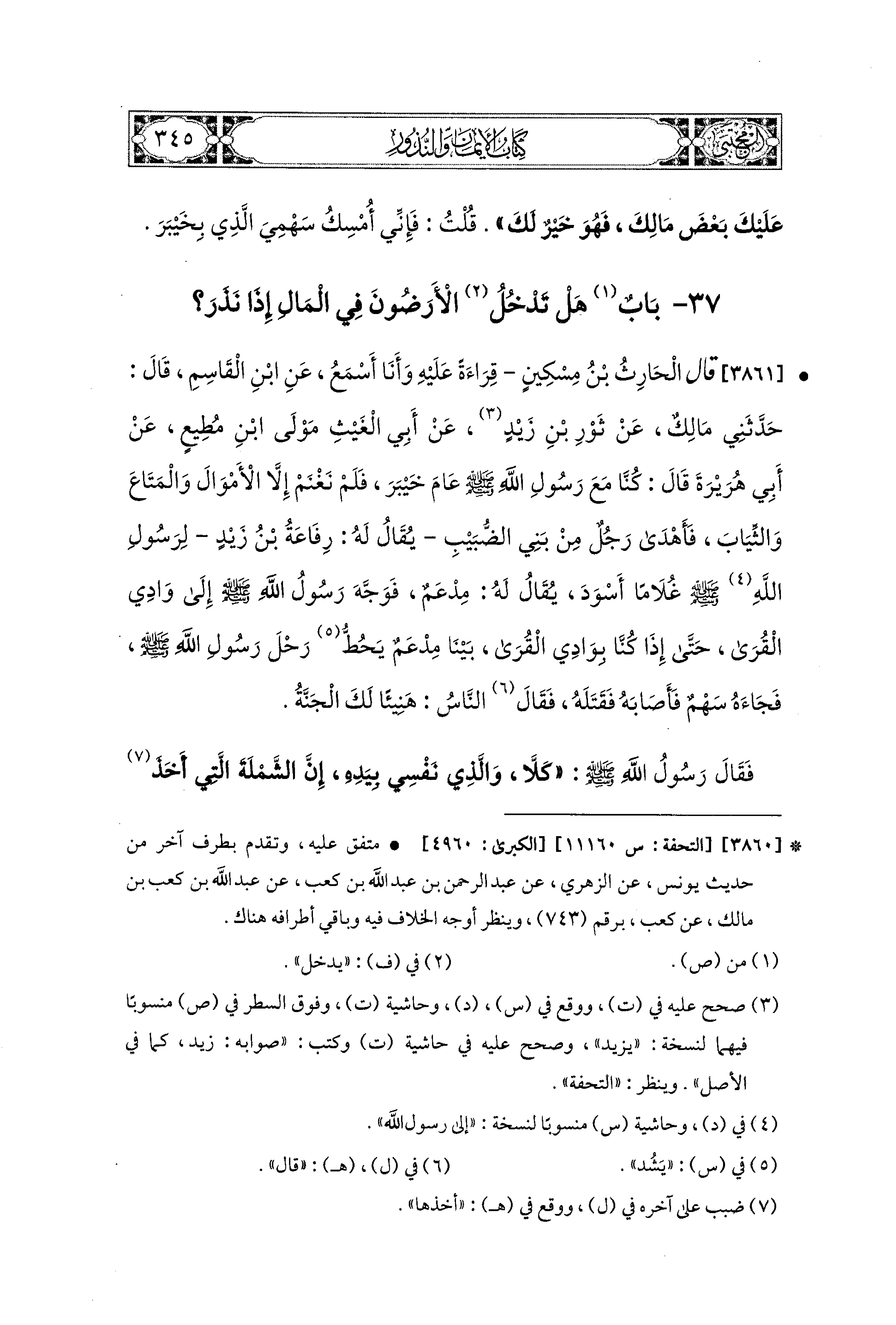 37- باب هَلْ تَدْخُلُ الأَرضُونَ فِي المَالِ إِذَا نَذَرَ.