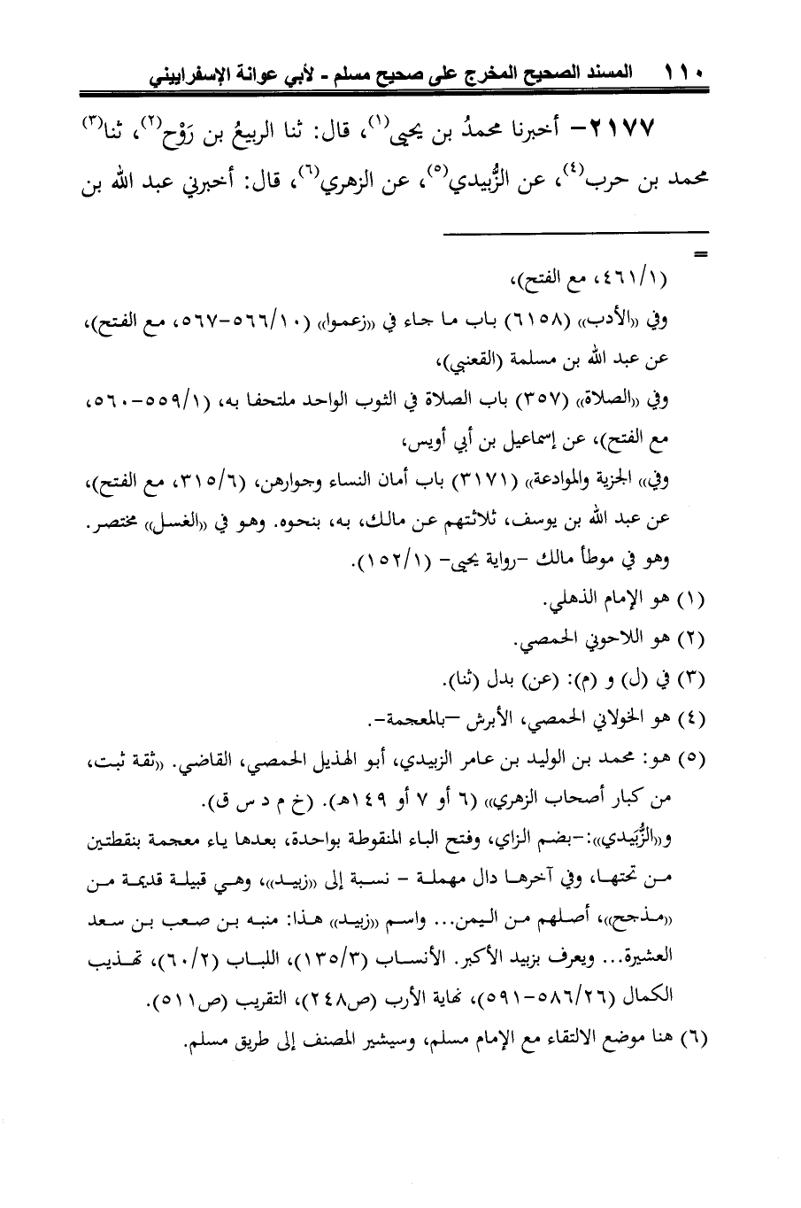 (¬5) هو: محمد بن الوليد بن عامر الزبيدي، أبو الهذيل الحمصي، القاضي. "ثقة ثبت، من كبار أصحاب الزهري" (6 أو 7 أو 149 هـ). (خ م د س ق).