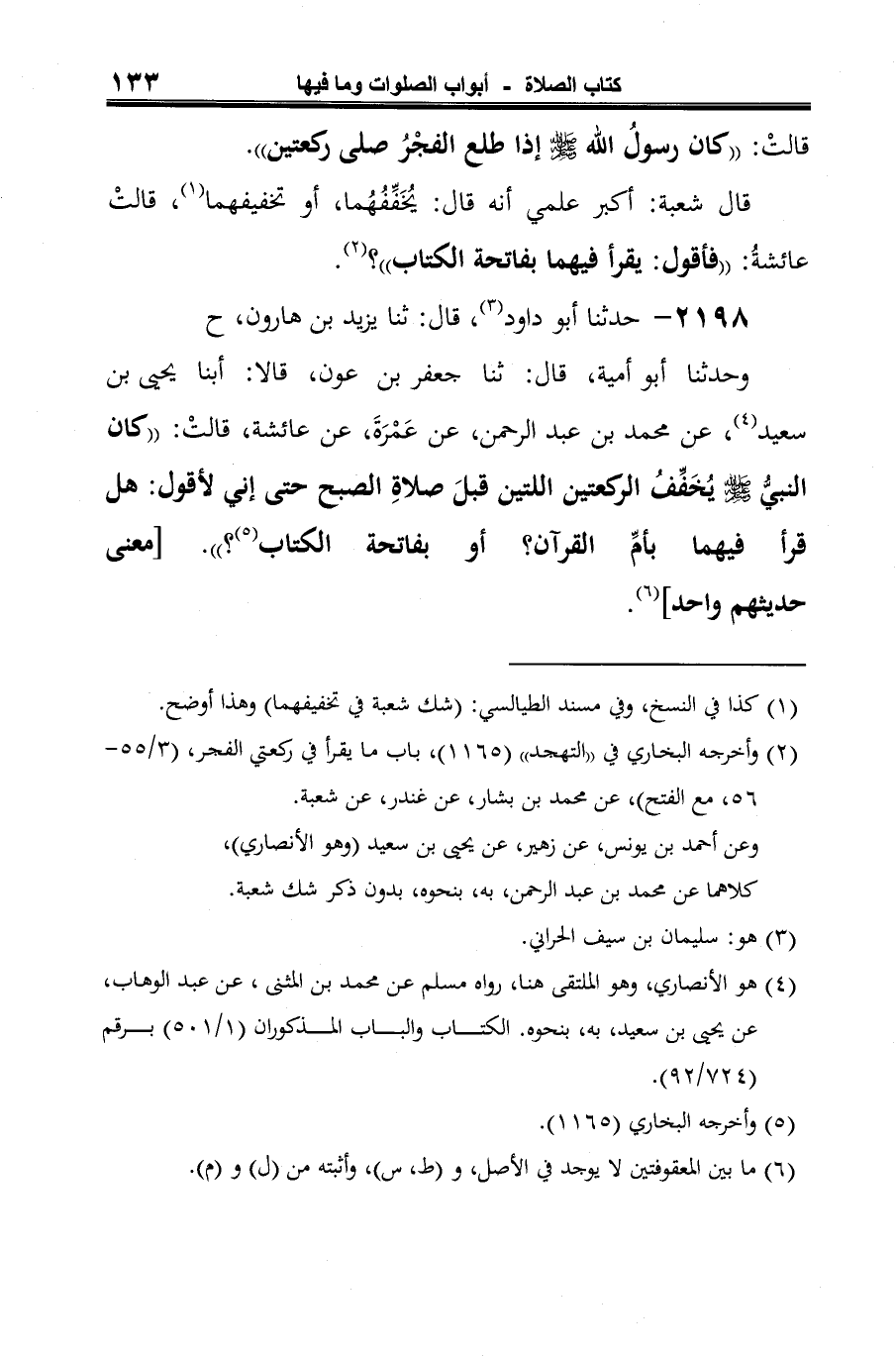 وحدثنا أبو أمية، قال: ثنا جعفر بن عون، قالا: أبنا يحيى بن سعيد (¬2)، عن محمد بن عبد الرحمن، عن عَمْرَةَ، عن عائشة، قالتْ: "كان النبيُّ -صلى الله عليه وسلم- يُخَفِّفُ الركعتين اللتين قبلَ صلاةِ الصبح حتى إني لأقول: هل قرأ فيهما بأمِّ القرآن؟ أو بفاتحة الكتاب (¬3)؟ ". [معنى حديثهم واحد] (¬4).