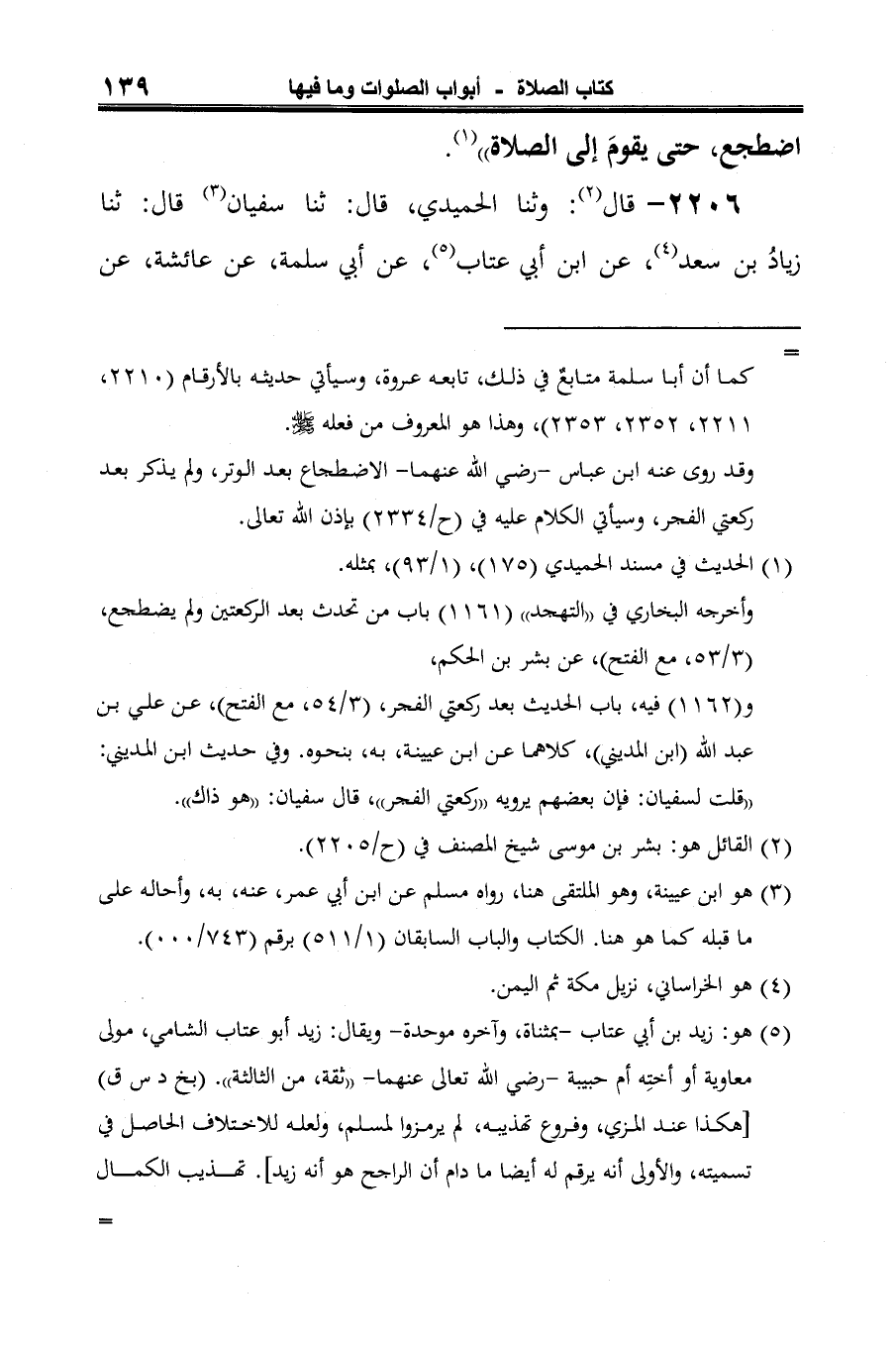 2206 - قال (¬1): وثنا الحميدي، قال: ثنا سفيان (¬2) قال: ثنا زيادُ بن سعد (¬3)، عن ابن أبي عتاب (¬4)، عن أبي سلمة، عن عائشة، عن