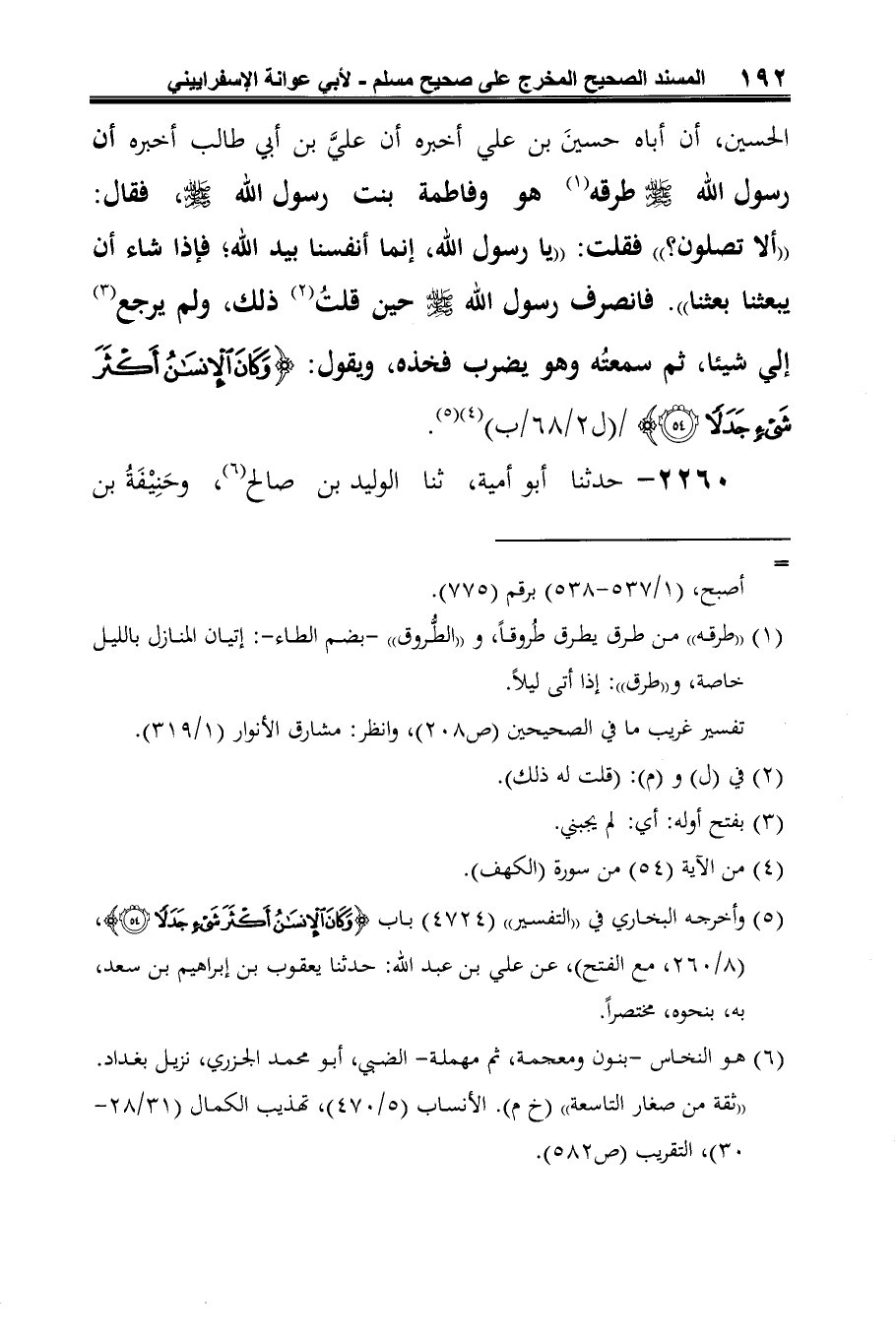 -[193]- مَرْزُوق (¬2) -شيخ ثقة، ببغداد- قالا: ثنا الليث (¬3)، عن عقيل، عن ابن شهاب -بإسناده مثله- "وهو مدبر يضرب فخذه، ويقول: {وَكَانَ الْإِنْسَانُ أَكْثَرَ شَيْءٍ جَدَلًا (54)} " (¬4).