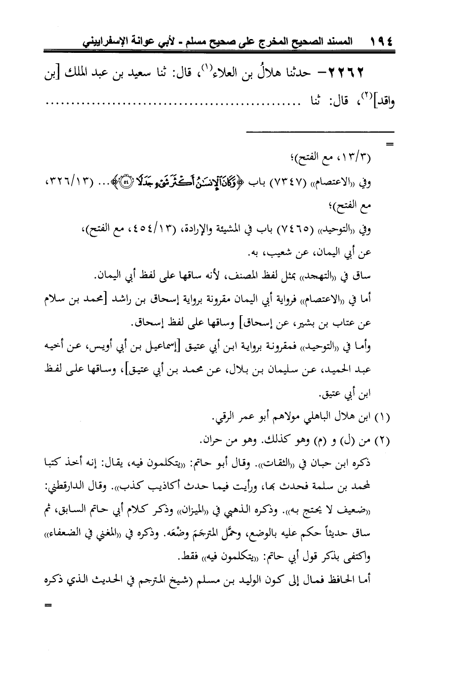 2262 - حدثنا هلالُ بن العلاء (¬1)، قال: ثنا سعيد بن عبد الملك [بن واقد] (¬2)، قال: ثنا