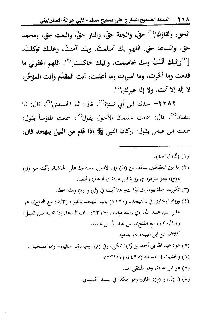 2282 - حدثنا ابن أبي مَسَرَّة (¬1)، قال: ثنا الحميدي (¬2)، قال: ثنا سفيان (¬3)، قال: سمعت سليمان الأحول يقول (¬4): سمعت طاؤسًا يقول: سمعت ابن عباس يقول: "كان النبي -صلى الله عليه وسلم- إذا قام من الليل يتهجد قال: