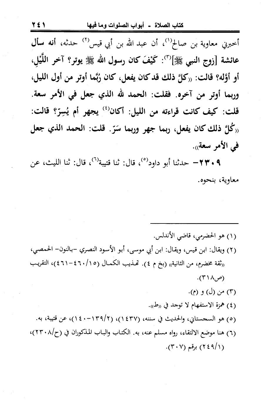 2309 - حدثنا أبو داود (¬1)، قال: ثنا قتيبة (¬2)، قال: ثنا الليث، عن معاوية، بنحوه.