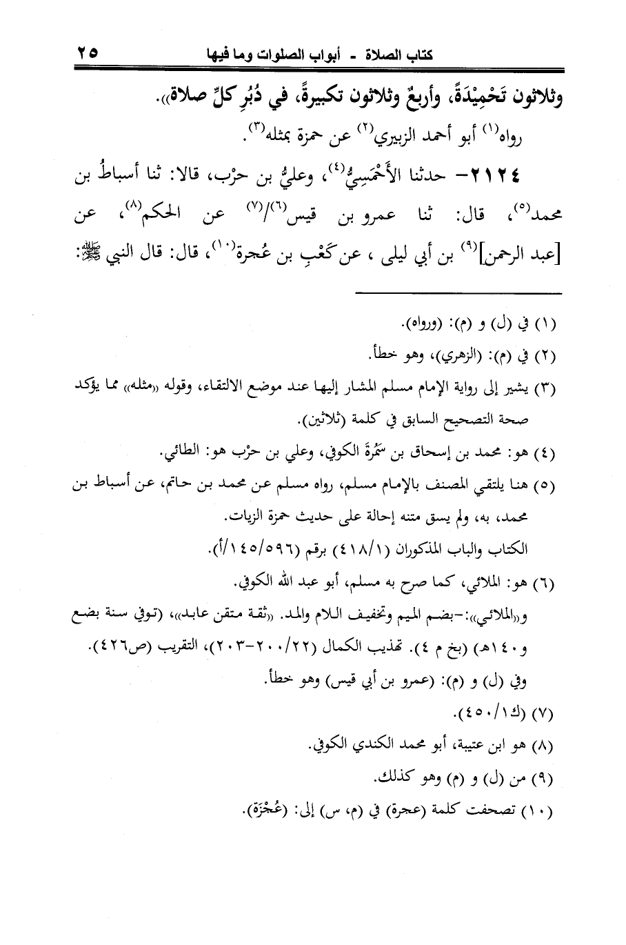 (¬2) هنا يلتقي المصنف بالإمام مسلم، رواه مسلم عن محمد بن حاتم، عن أسباط بن محمد، به، ولم يسق متنه إحالة على حديث حمزة الزيات.
