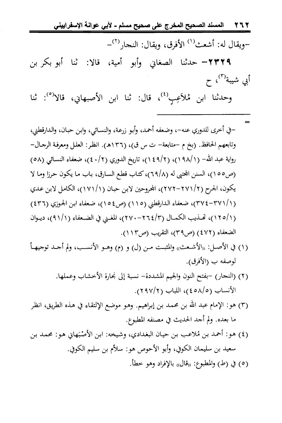 2329 - حدثنا الصغاني وأبو أمية، قالا: ثنا أبو بكر بن أبي شيبة (¬1)، ح