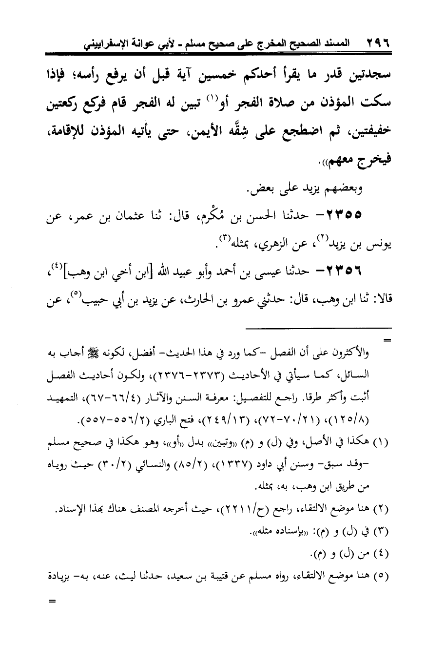 2356 - حدثنا عيسى بن أحمد وأبو عبيد الله [ابن أخي ابن وهب] (¬1)، قالا: ثنا ابن وهب، قال: حدثني عمرو بن الحارث، عن يزيد بن أبي حبيب (¬2)، عن