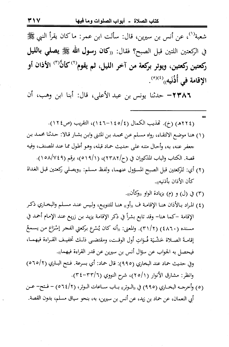 2386 - حدّثنا يونس بن عبد الأعلى، قال: أبنا ابن وهب، أن