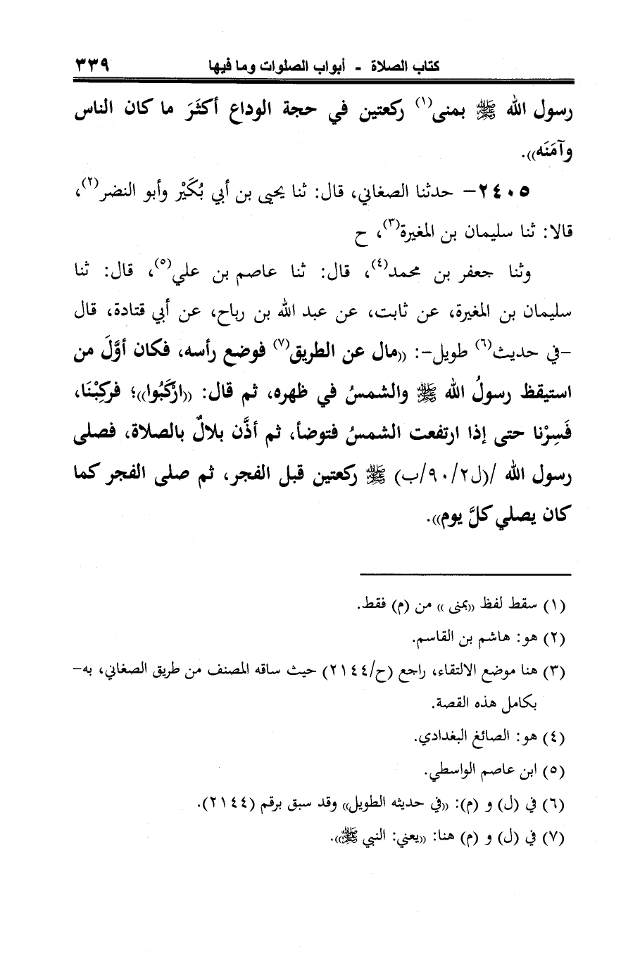 2405 - حدّثنا الصغاني، قال: ثنا يحيى بن أبي بُكَيْر وأبو النضر (¬1)، قالا: ثنا سليمان بن المغيرة (¬2)، ح