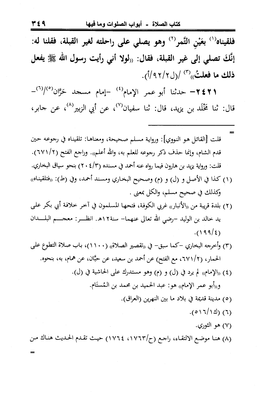 2421 - حدّثنا أبو عمر الإمام (¬1) -إمام مسجد حَرَّان (¬2) (¬3) - قال: ثنا مَخْلَد بن يزيد، قال: ثنا سفيان (¬4)، عن أبي الزبير (¬5)، عن جابر،