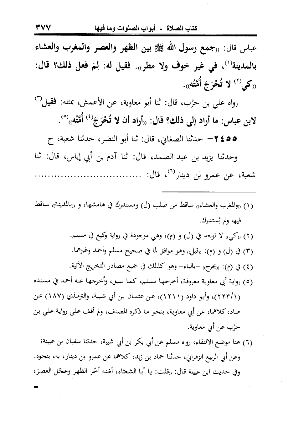 -[378]- سمعت جابر بن زيد (¬2)، قال: سمعتُ ابنَ عبّاس يقول: "صلّى رسول الله -صلى الله عليه وسلم- ثمانيا جميعًا وسبعًا جميعا". (¬3) زاد أبو النضر قال: "كأنه في الحضر" (¬4).