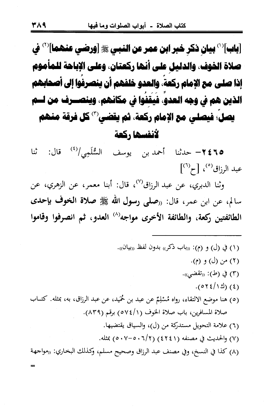 (¬2) هنا موضع الالتقاء، رواه مُسْلِمٌ عن عبد بن حُمَيد، عن عبد الرزاق، به، بمثله. كتاب صلاة المسافرين، باب صلاة الخوف (1/ 574) برقم (839).