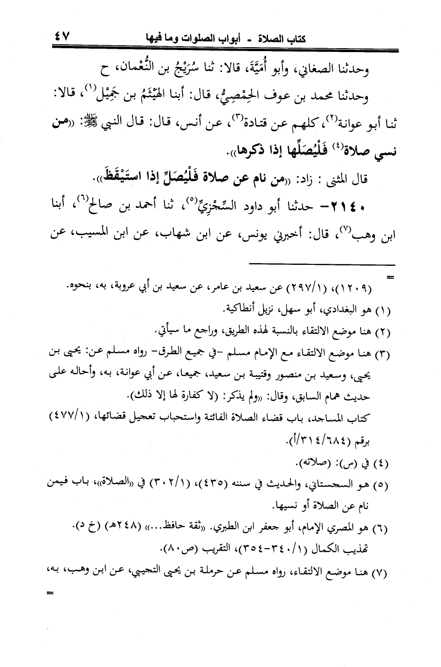 (¬1) هو السجستاني، والحديث في سننه (435)، (1/ 302) في "الصلاة"، باب فيمن نام عن الصلاة أو نسيها.