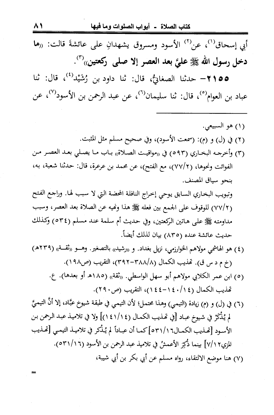 2155 - حدثنا الصغانيُّ، قال: ثنا داود بن رُشَيْد (¬1)، قال: ثنا عباد بن العوام (¬2)، قال: ثنا سليمان (¬3)، عن عبد الرحمن بن الأسود (¬4)، عن