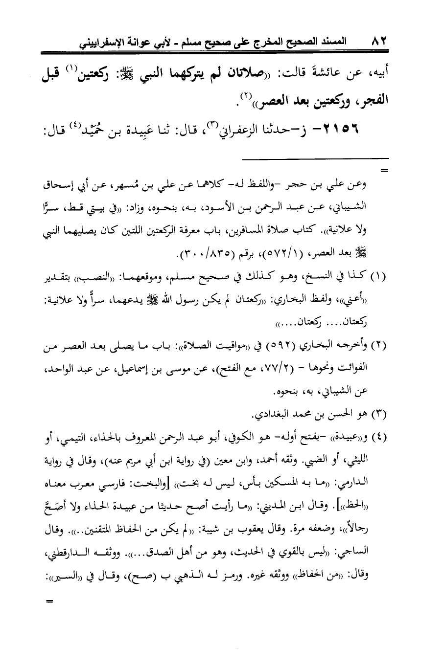 2156 - ز- حدثنا الزعفراني (¬1)، قال: ثنا عَبِيدة بن حُمَيْد (¬2) قال: