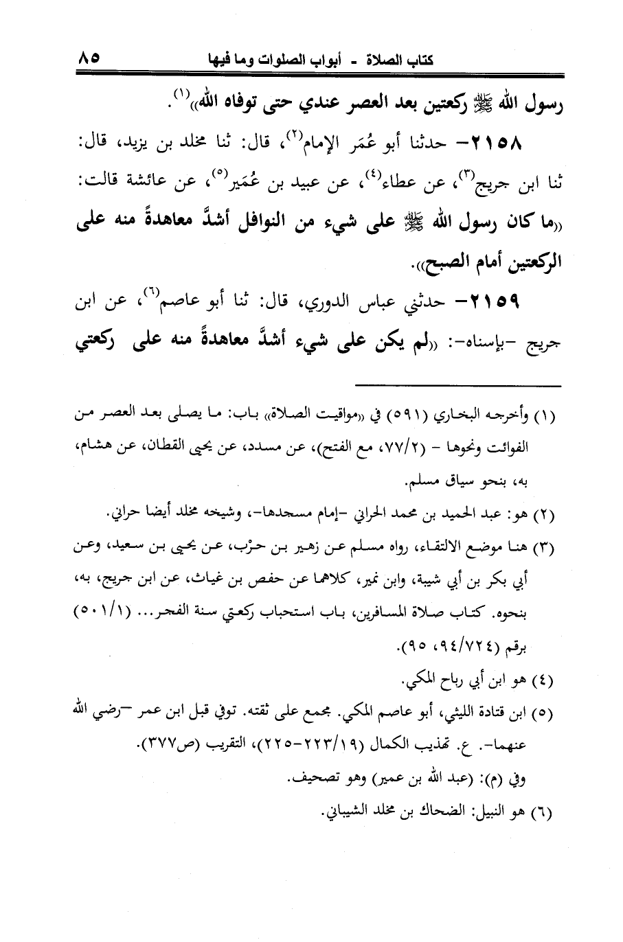2159 - حدثني عباس الدوري، قال: ثنا أبو عاصم (¬1)، عن ابن جريج -بإسناه-: "لم يكن على شيء أشدَّ معاهدةً منه على ركعتي