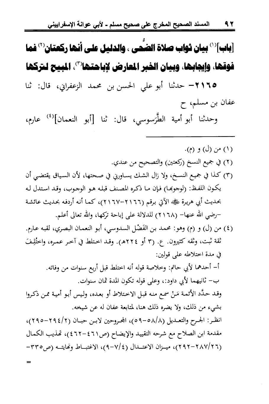 (¬1) من (ل) و (م) وهو: محمد بن الفَضْل السدوسي، أبو النعمان البصري، لقبه عارم. ثقة ثبت، وثقه كثيرون. ع. (3 أو 224 هـ). وقد اختلط في آخر عمره، واختُلِفَ في مدة اختلاطه على قولين: