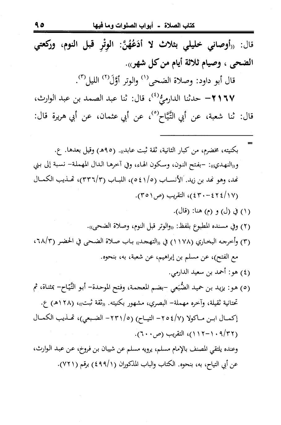 2167 - حدثنا الدارميُّ (¬1)، قال: ثنا عبد الصمد بن عبد الوارث، قال: ثنا شعبة، عن أبي التَّيَّاح (¬2)، عن أبي عثمان، عن أبي هريرة قال: