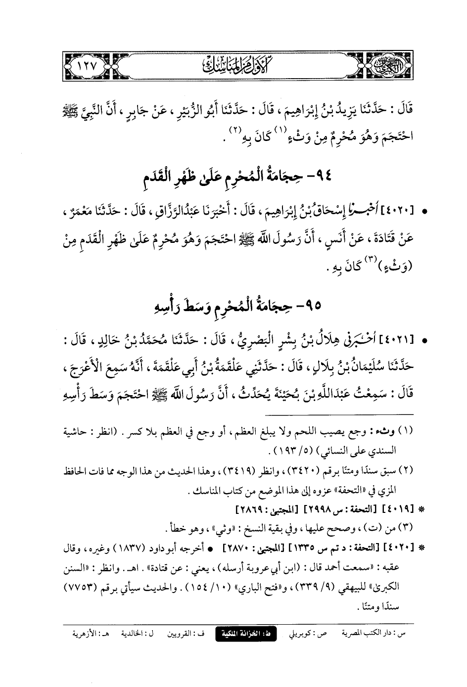 94- حِجَامَةُ المُحْرِمِ عَلَى ظَهْرِ القَدَمِ.