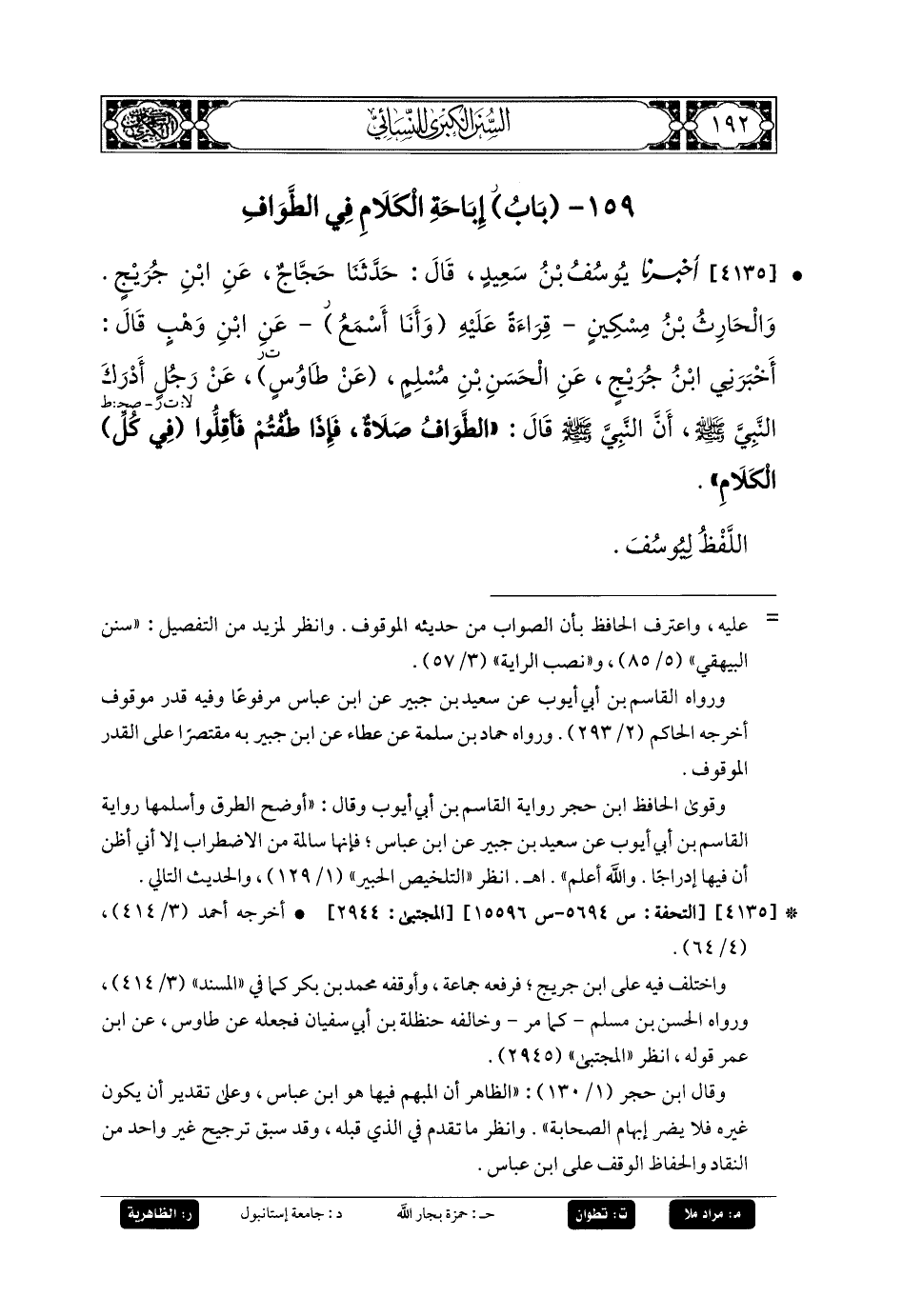 159- باب إِبَاحَةِ الكَلامِ فِي الطَّوَافِ.
