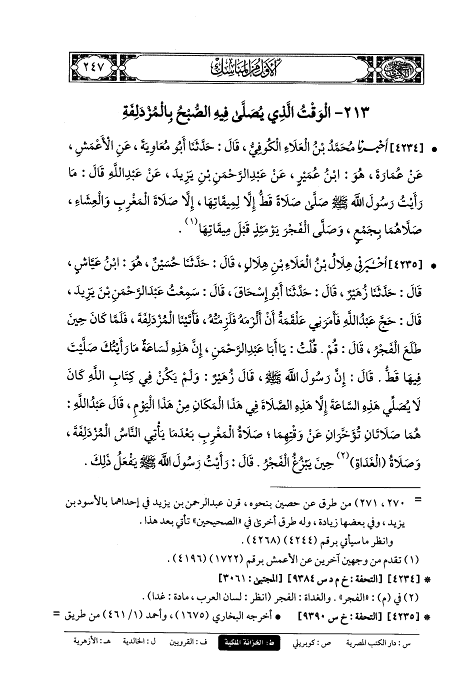 213- الوَقْتُ الَّذِي يُصَلَّى فِيهِ الصُّبْحُ بِالمُزْدَلِفَةِ.
