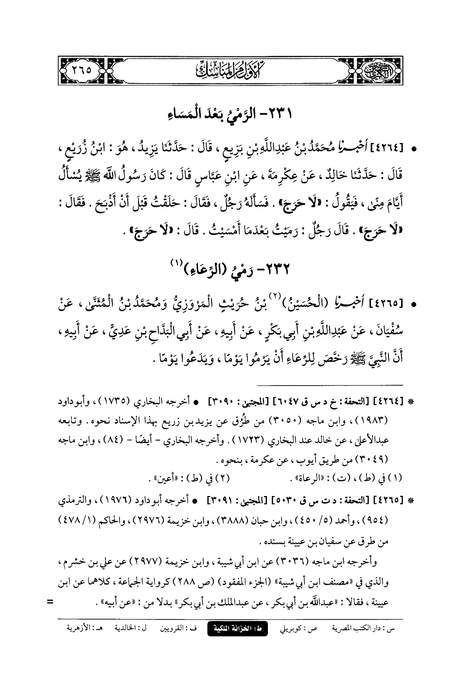 231- الرَّمْيُ بَعْدَ المَسَاءِ.