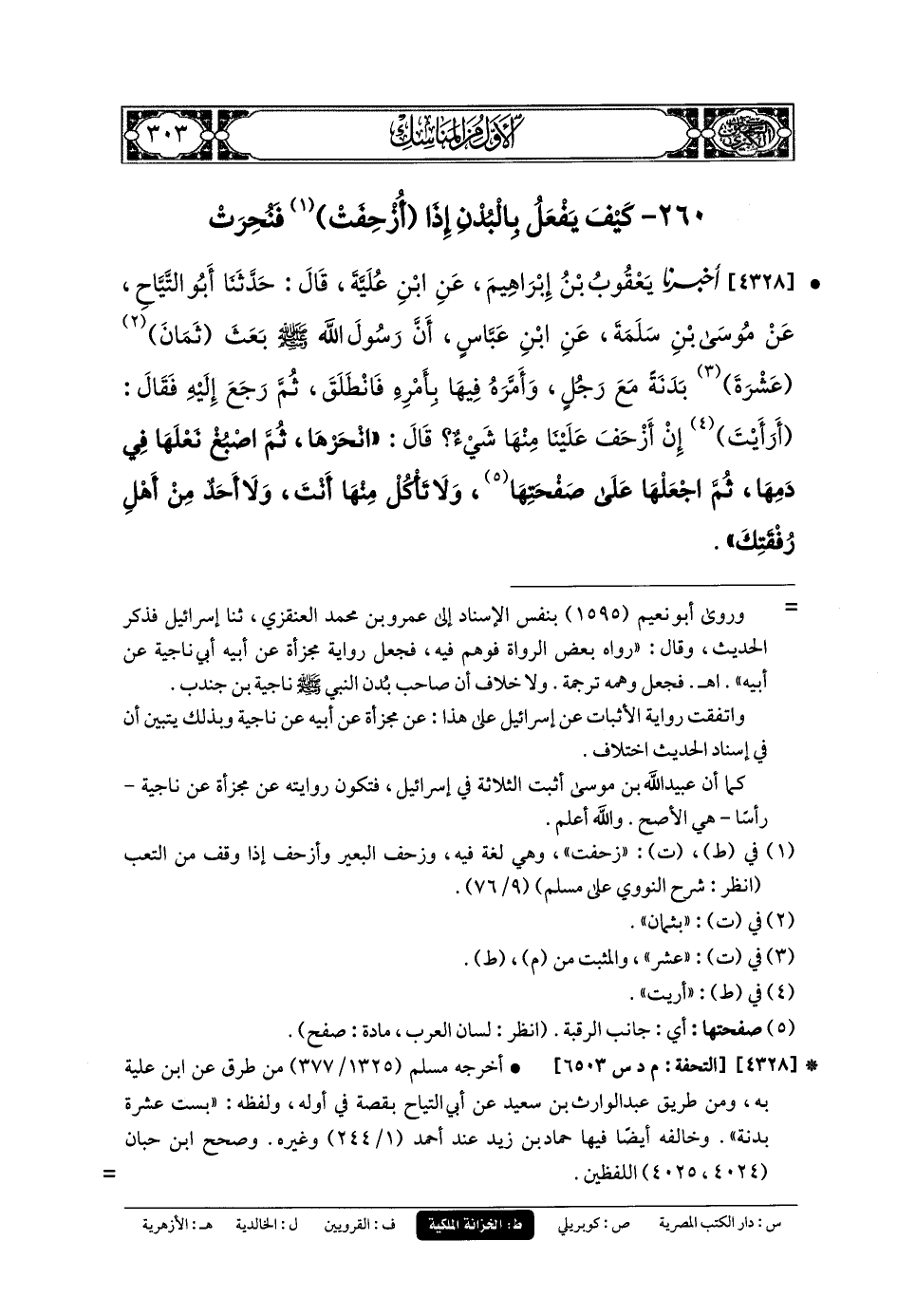 260- كَيْفَ يَفْعَلُ بِالبُدْنِ إِذَا أُزحِفَتْ فَنُحِرَتْ.