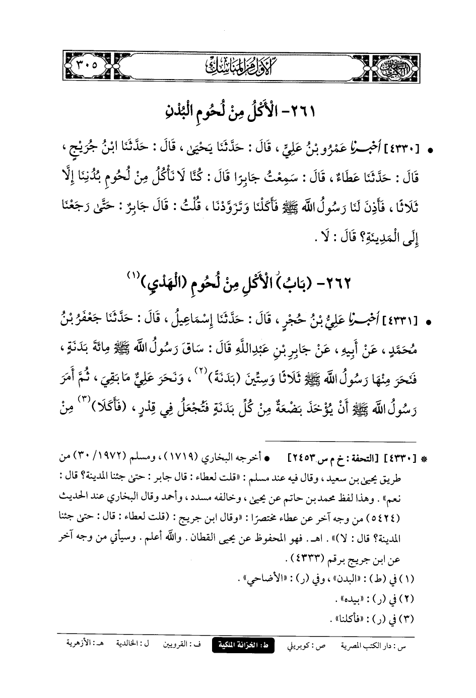 261- الأَكْلُ مِنْ لُحُومِ البُدْنِ.