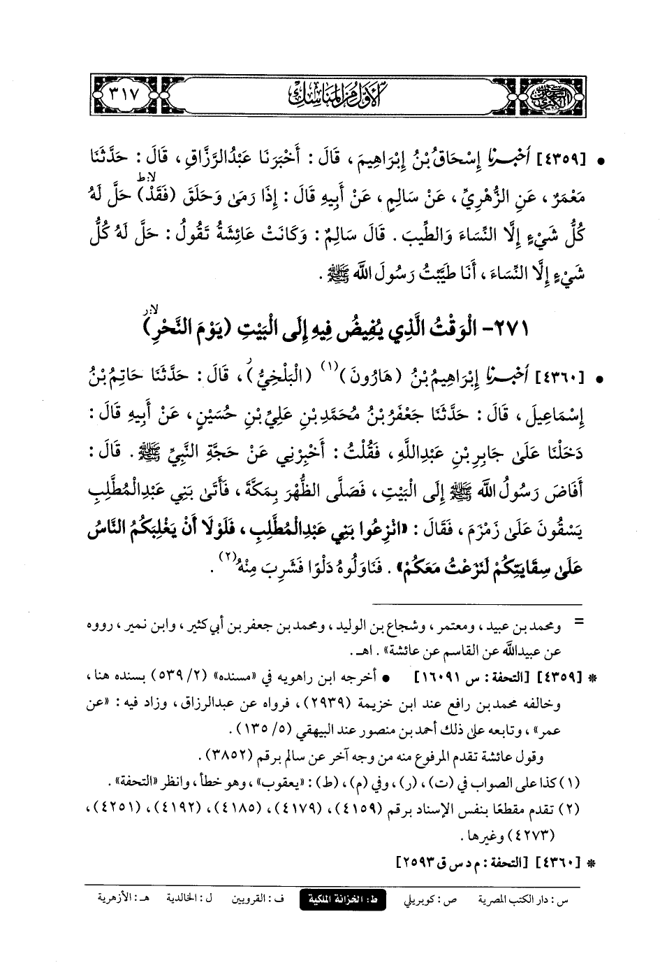 271- الوَقْتُ الَّذِي يُفِيضُ فِيهِ إِلَى البَيْتِ يَوْمَ النَّحْرِ.
