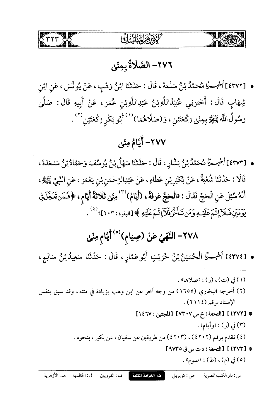 278- النَّهْيُ عَن صيامِ أَيَّامِ مِنًى.