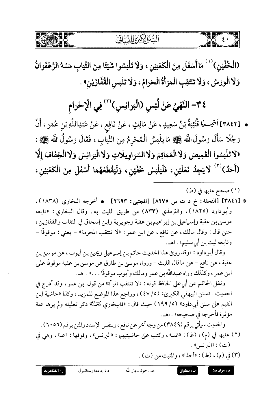 34- النَّهْيُ عَن لُبْسِ البَرَانِسِ فِي الإِحْرَامِ.