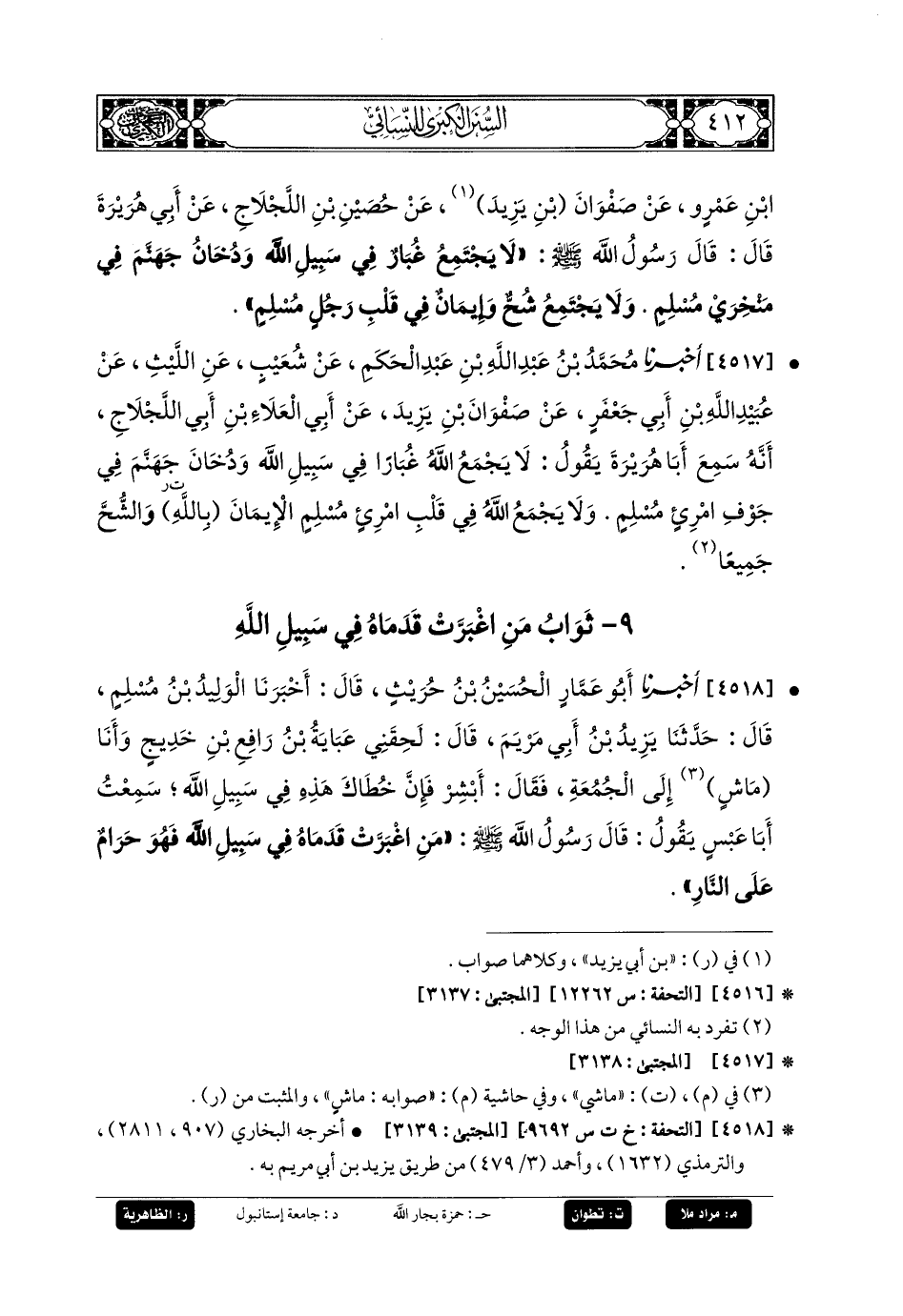 9- ثَوَابُ مَنِ اغْبَرَّتْ قَدَمَاهُ فِي سَبِيلِ اللهِ.