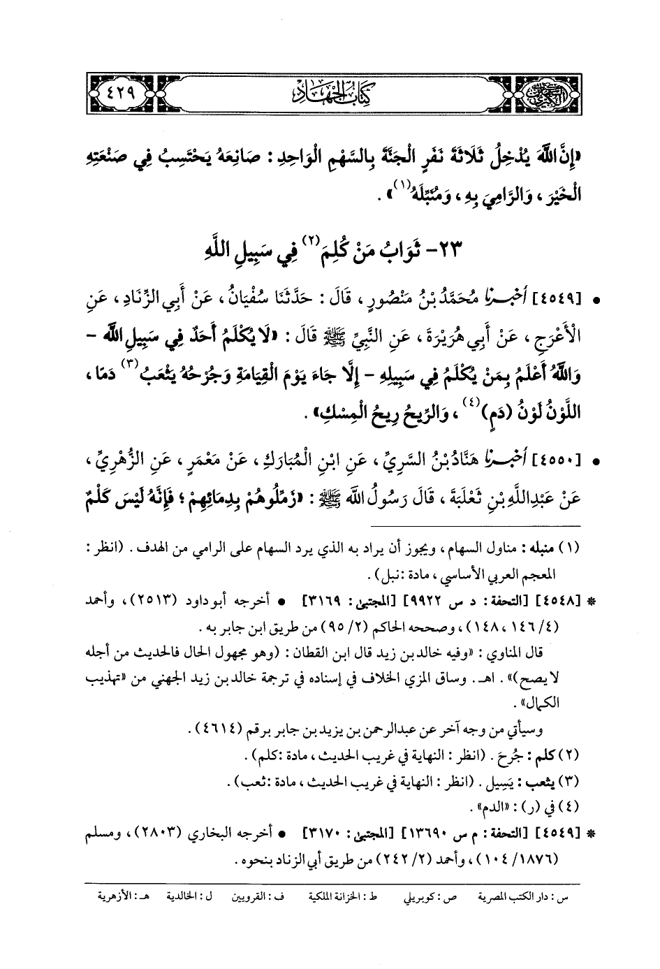 23- ثَوَابُ مَنْ كُلِمَ فِي سَبِيلِ اللهِ.