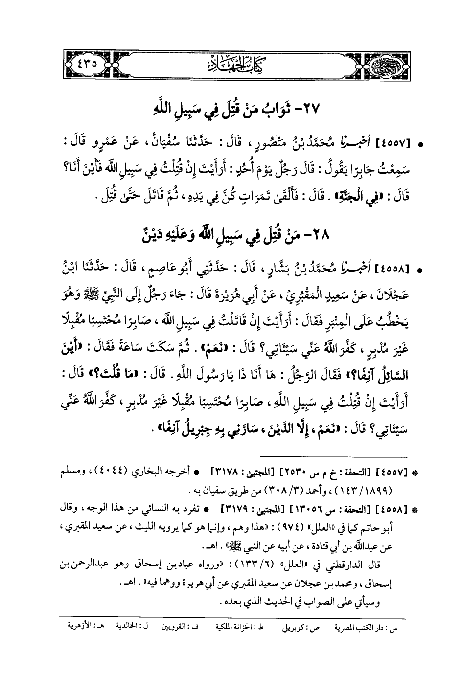 27- ثَوَابُ مَنْ قُتِلَ فِي سَبِيلِ اللهِ.
