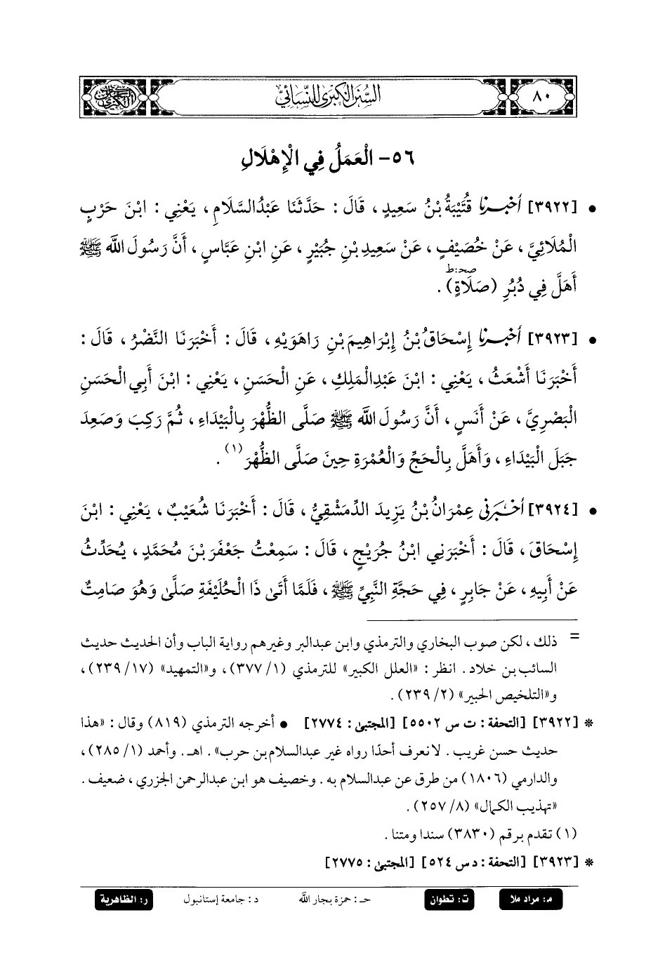 3922- أَخبَرنا قُتَيبَةُ بنُ سَعِيدٍ، قَالَ: حَدَّثنا عَبدُ السَّلامِ، يَعْنِي ابْنَ حَرْبٍ المُلائِيَّ، عَن خُصَيْفٍ، عَن سَعِيدِ بنِ جُبَيرٍ، عَنِ ابنِ عَبَّاسٍ، أَنَّ رَسُولَ اللهِ صَلى الله عَليه وسَلم أَهَلَّ فِي دُبُرِ صَلاةٍ.