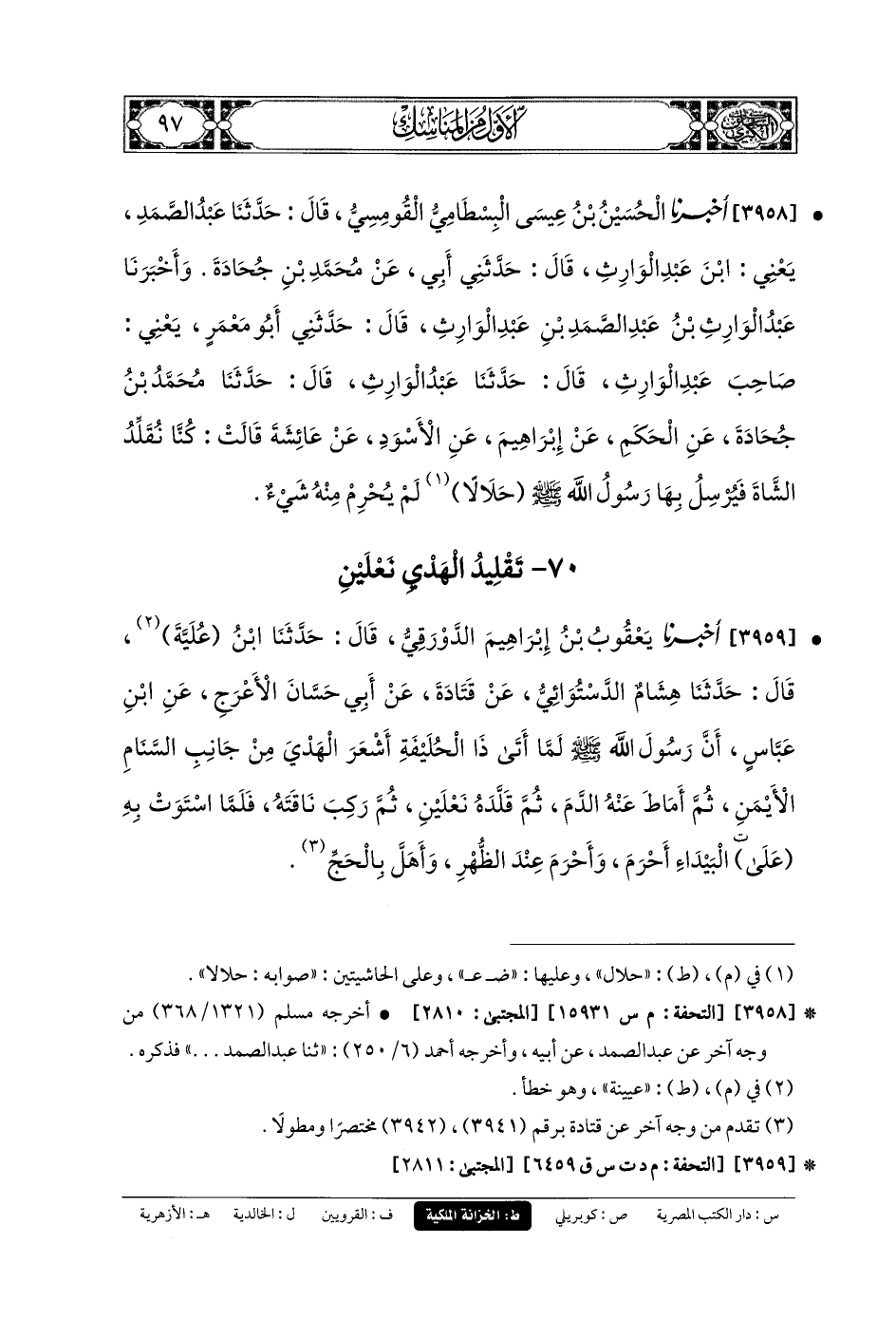 70- تَقْلِيدُ الهَدْيِ نَعْلَيْنِ.