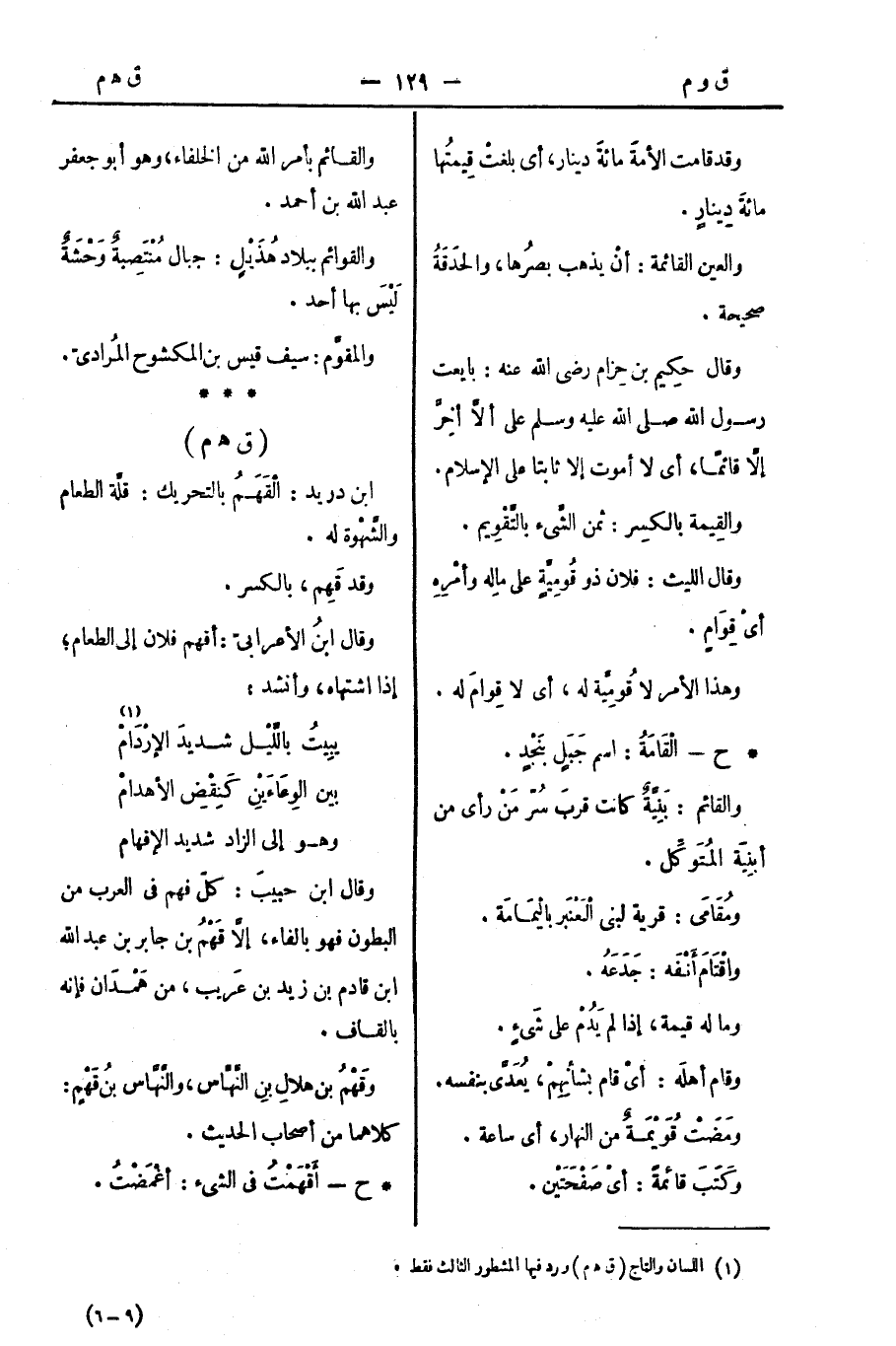 وقال ابن حبيبَ: كلّ فهم في العرب من البطون فهو بالفاء، إلَّا قَهْمُ بن جابر بن عبد الله بن قادم بن زيد بن عَريب، من هَمْدَان فإنه بالقاف.