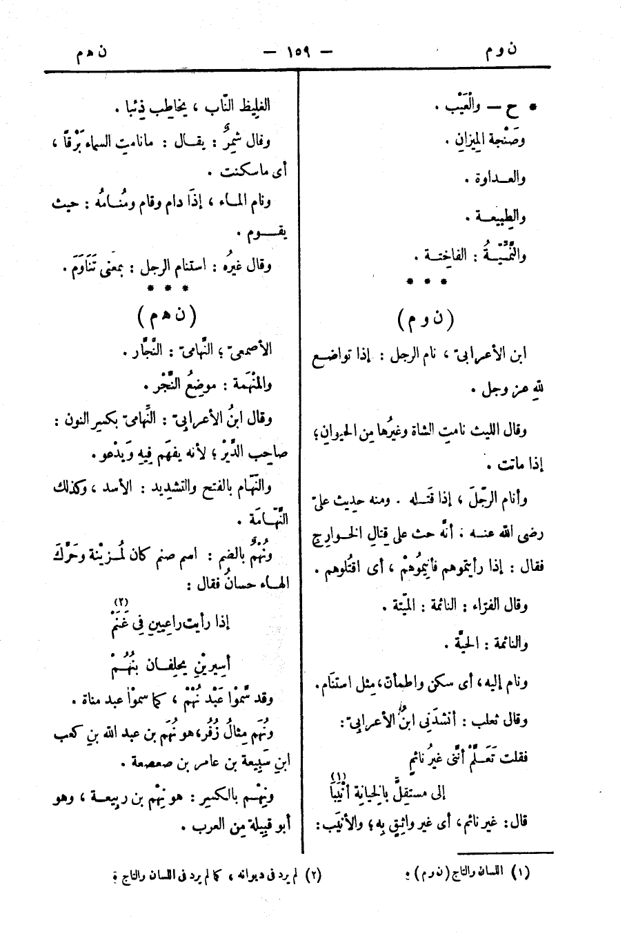 ونُهَم مِثالُ زُفُر، هو نُهَم بن عبد الله بنِ كعب بنِ سَبِيعة بن عامر بن صعصعة.