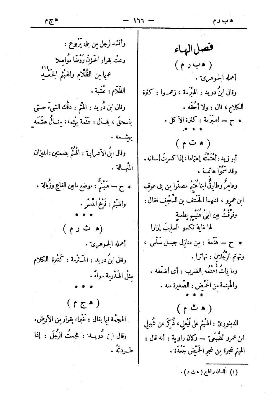 *ح - هَتْمة: مِن منازِل جبل سَلْمى، وتهاتم الرَّجُلان: تهاترا.