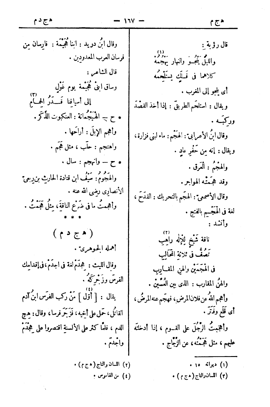 وقال الأصمعيّ: الهجَم بالتحريك: القدَحَ، لغة في الْهَجْمِ بالفتحِ.